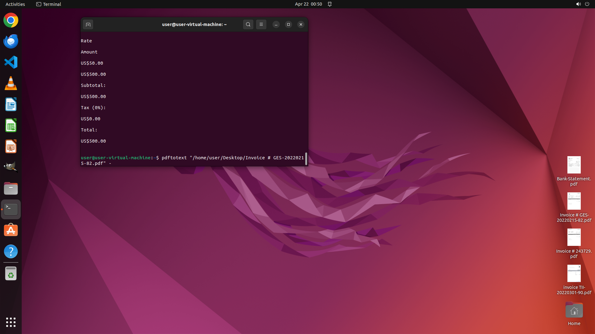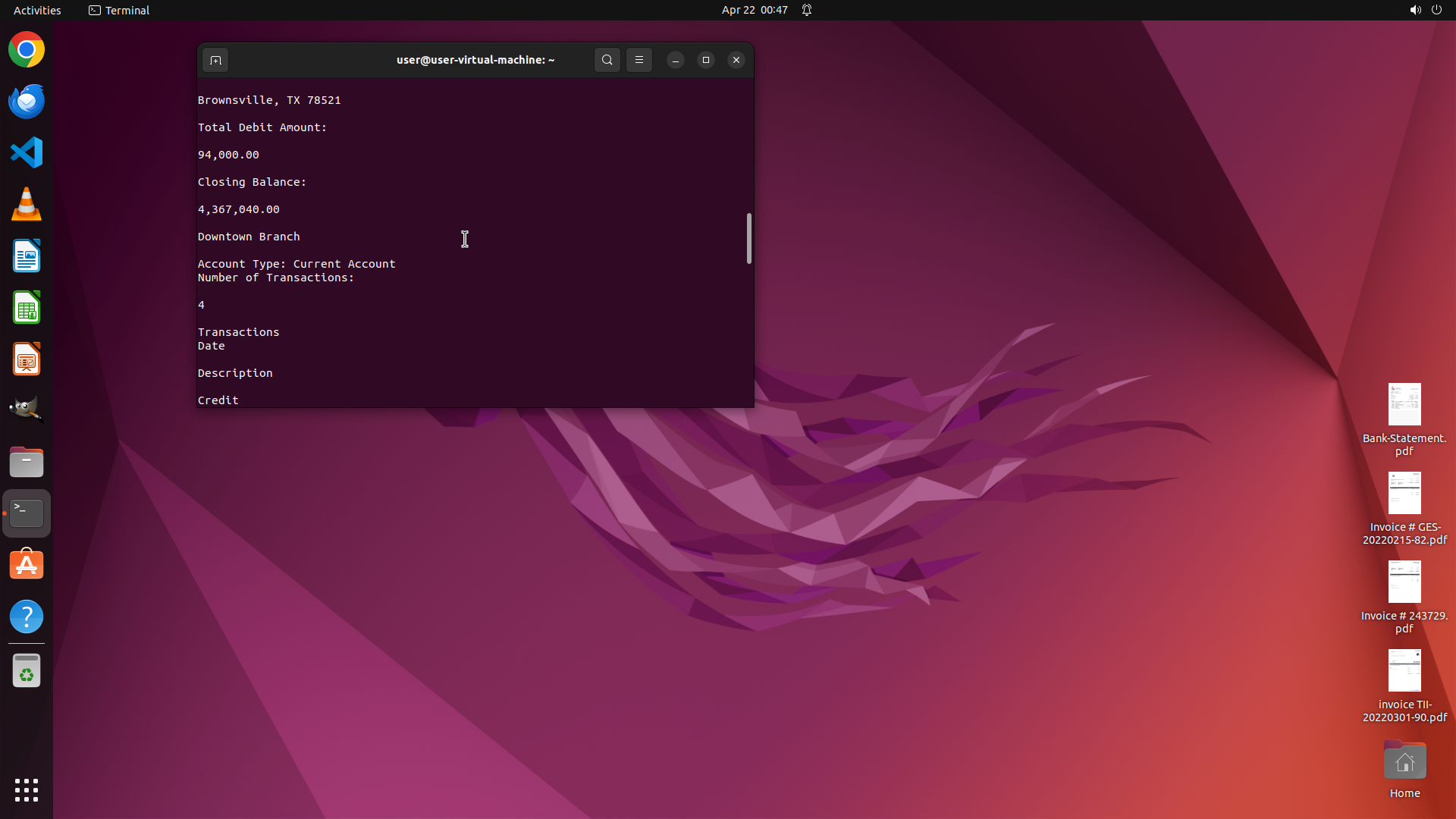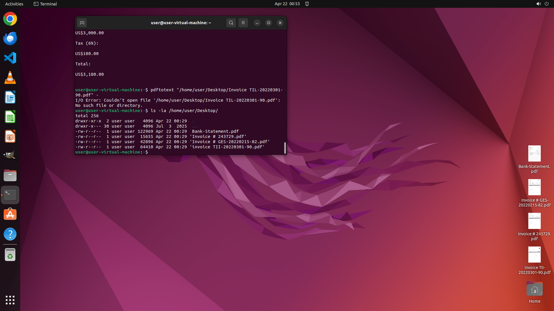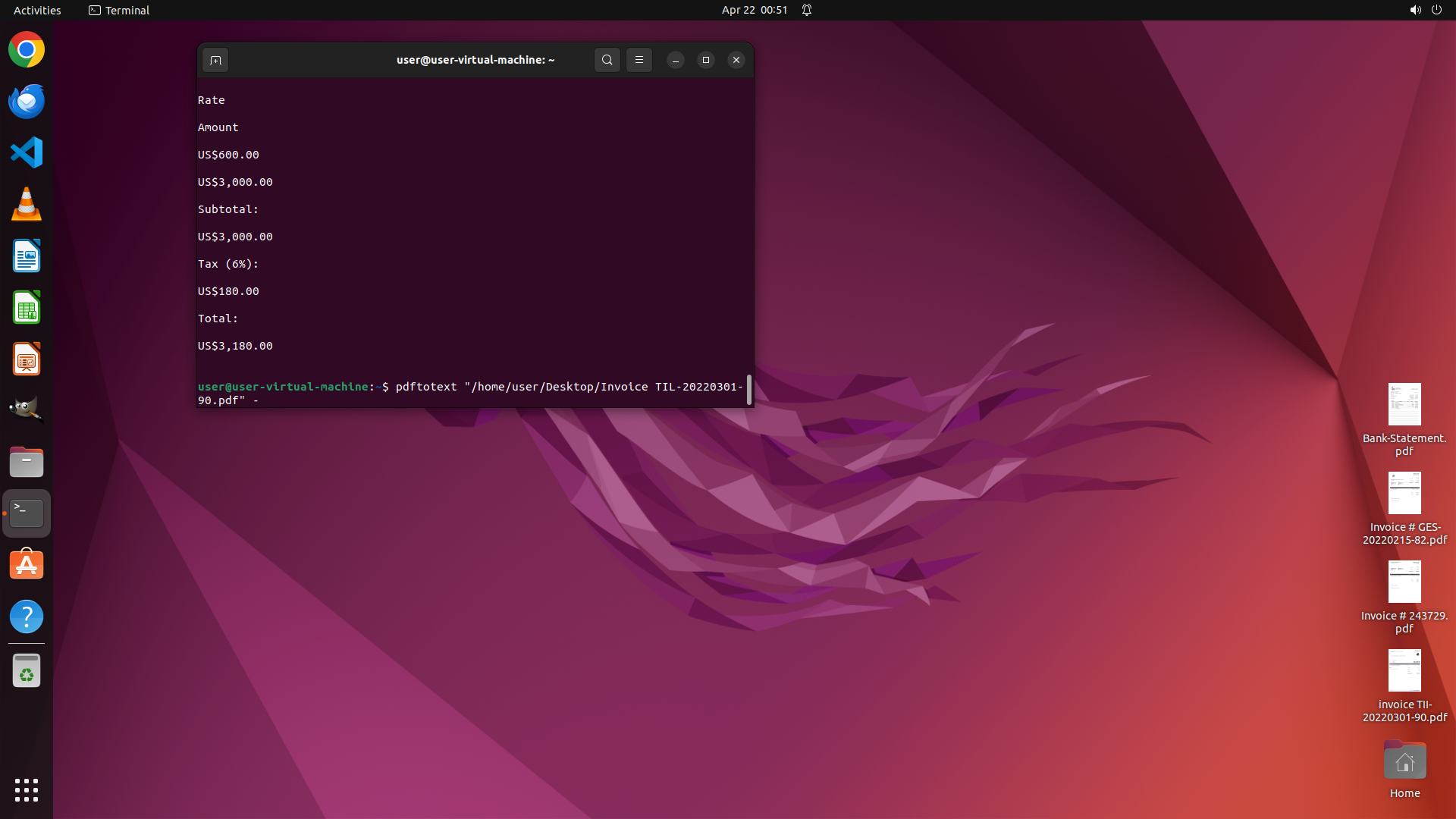 TYPING "pdftotext /home/user/Desktop/Bank-Statem…"