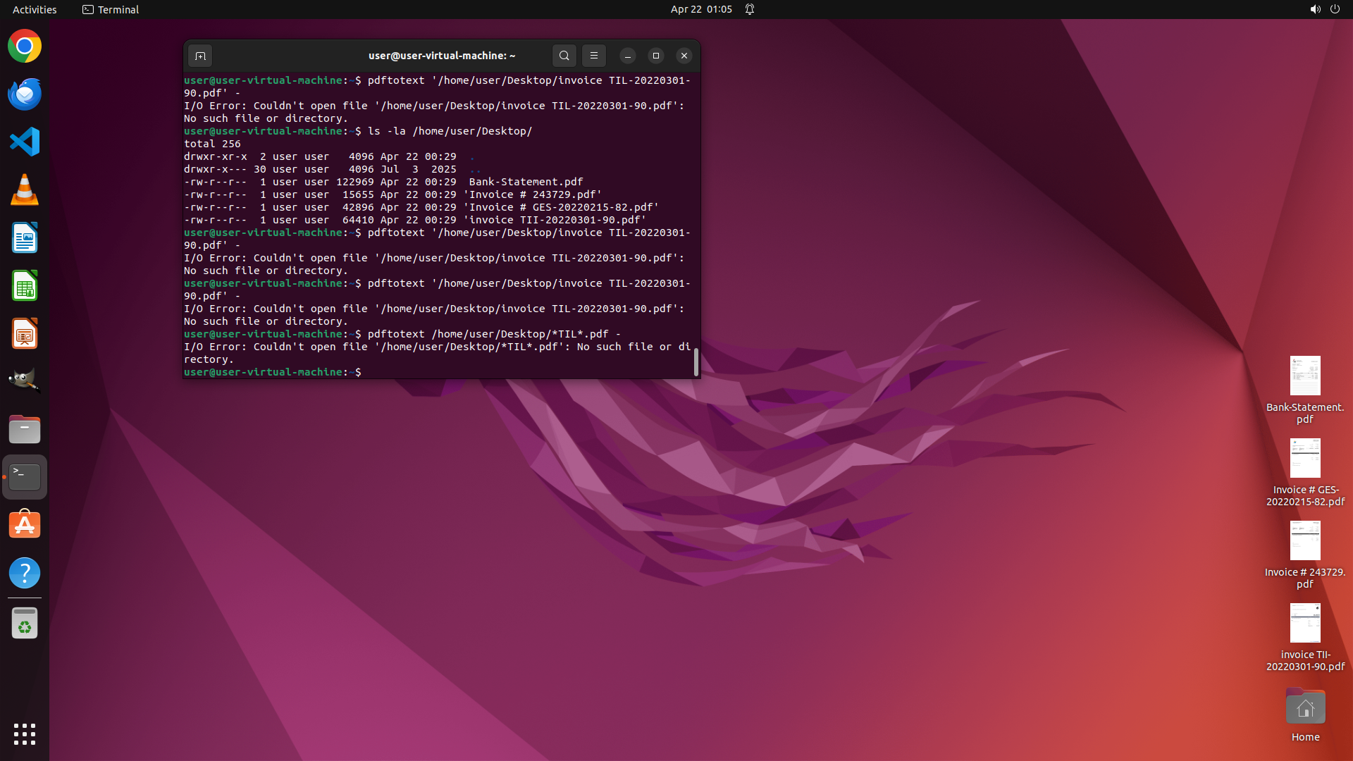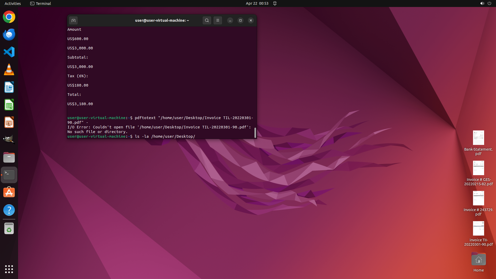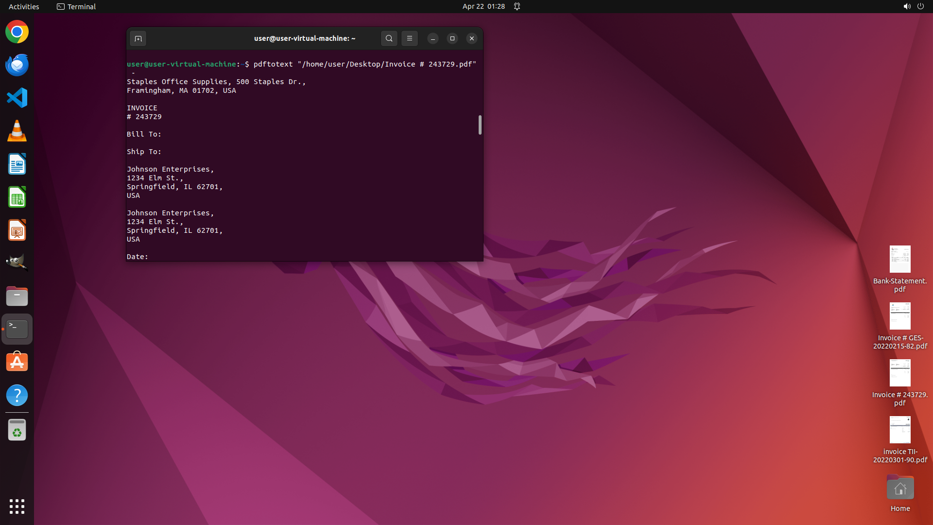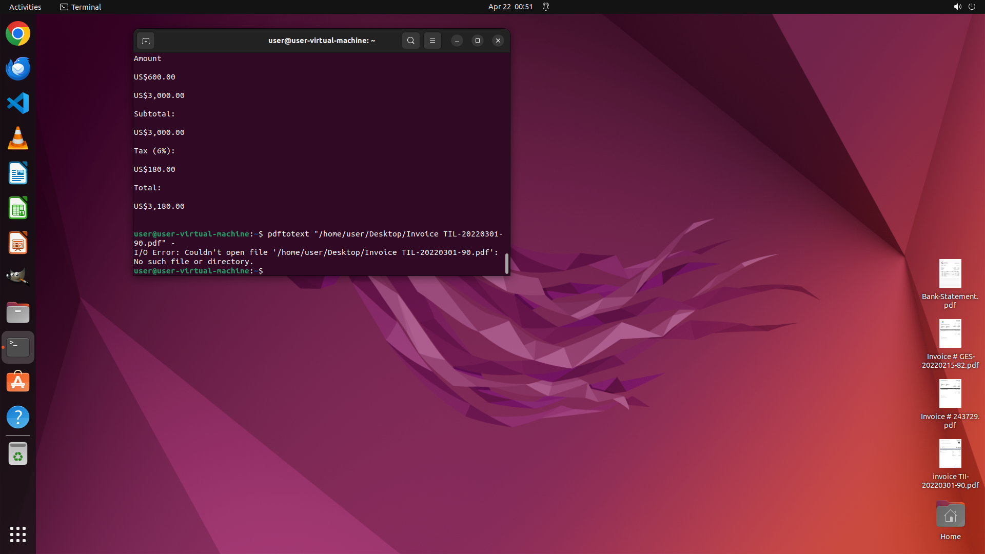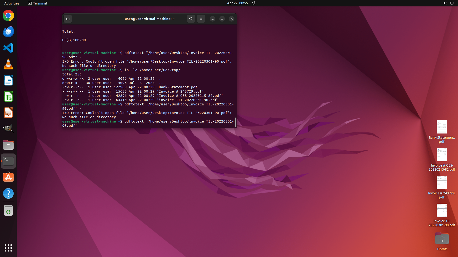 TYPING "pdftotext /home/user/Desktop/Bank-Statem…"