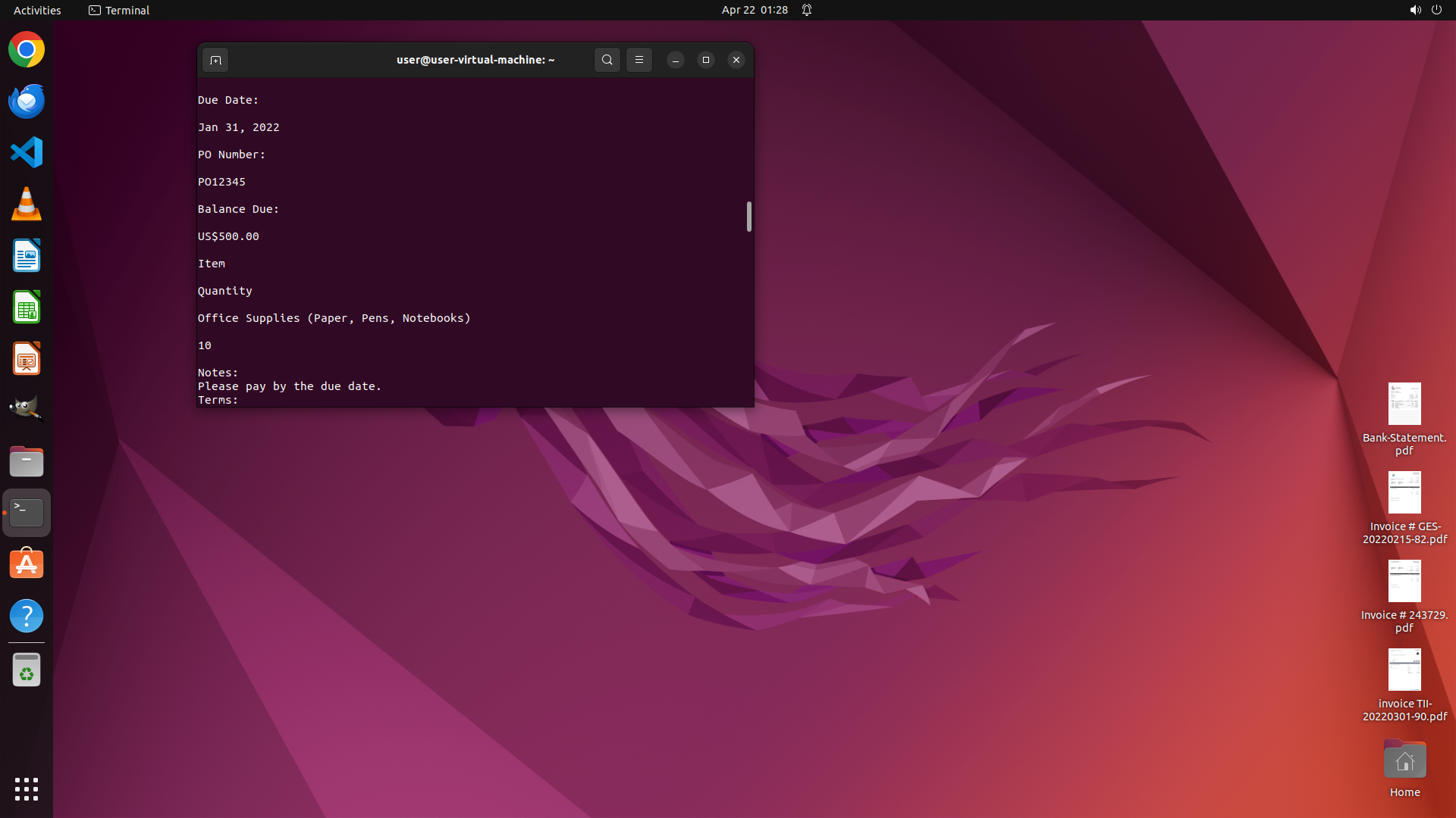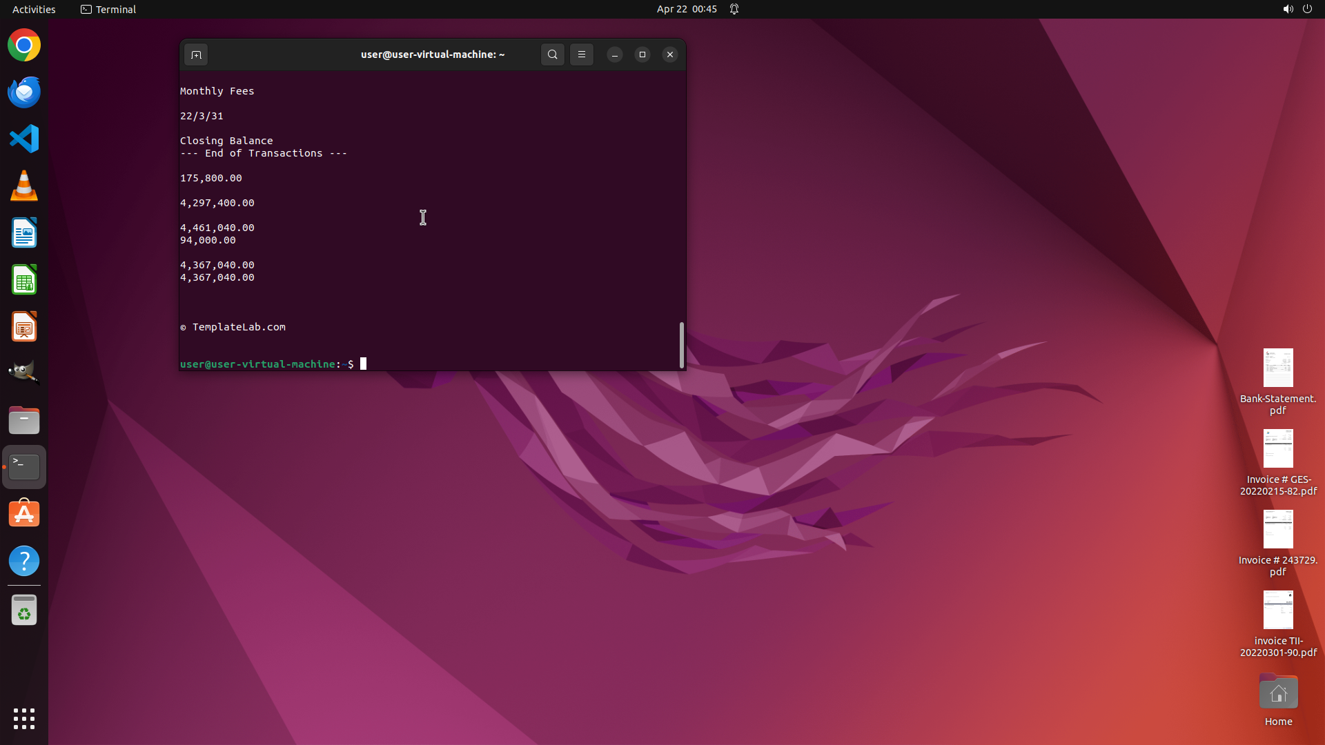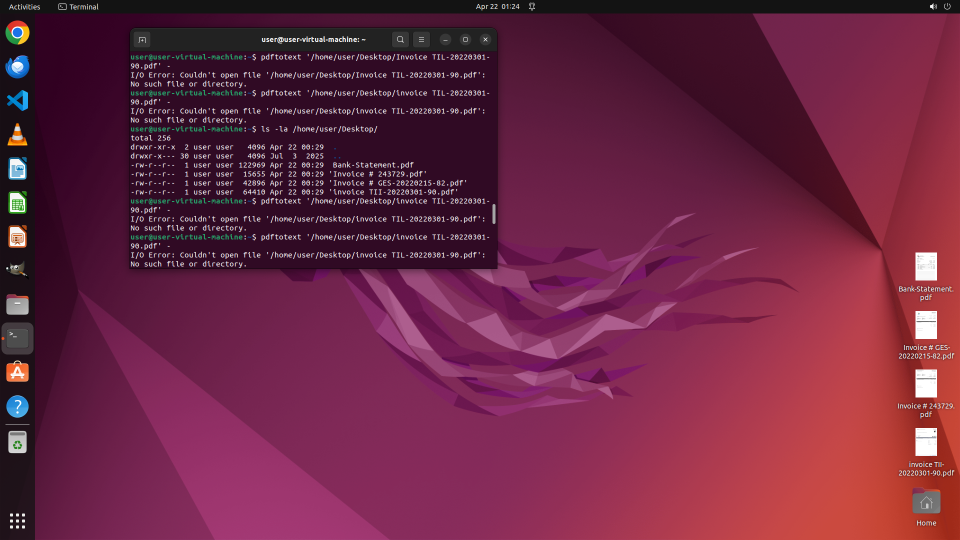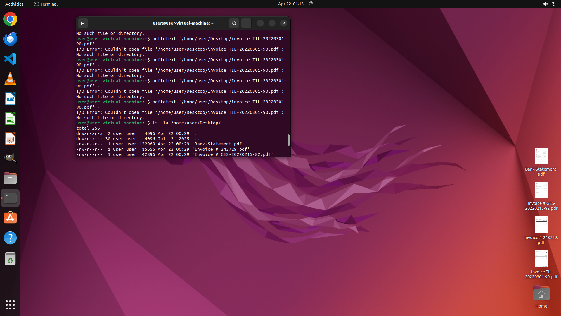 TYPING "pdftotext /home/user/Desktop/Bank-Statem…"