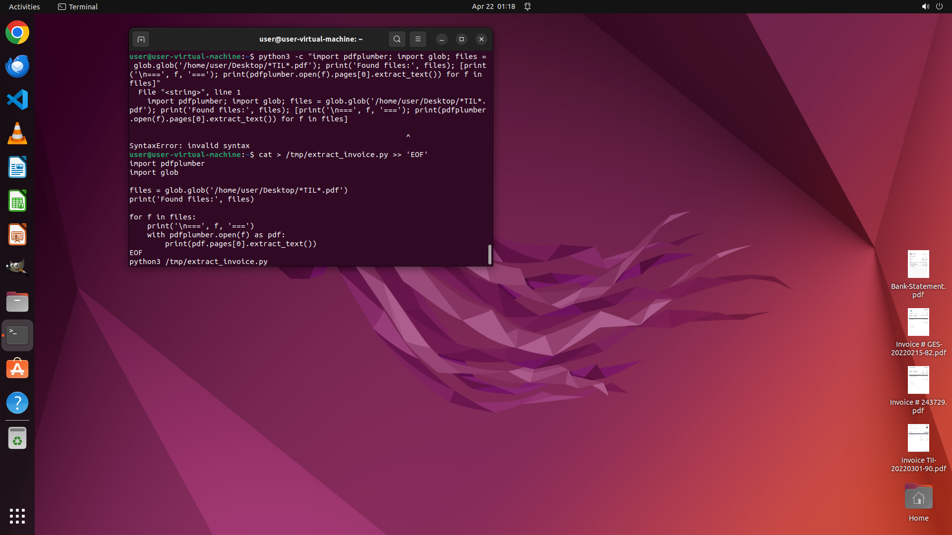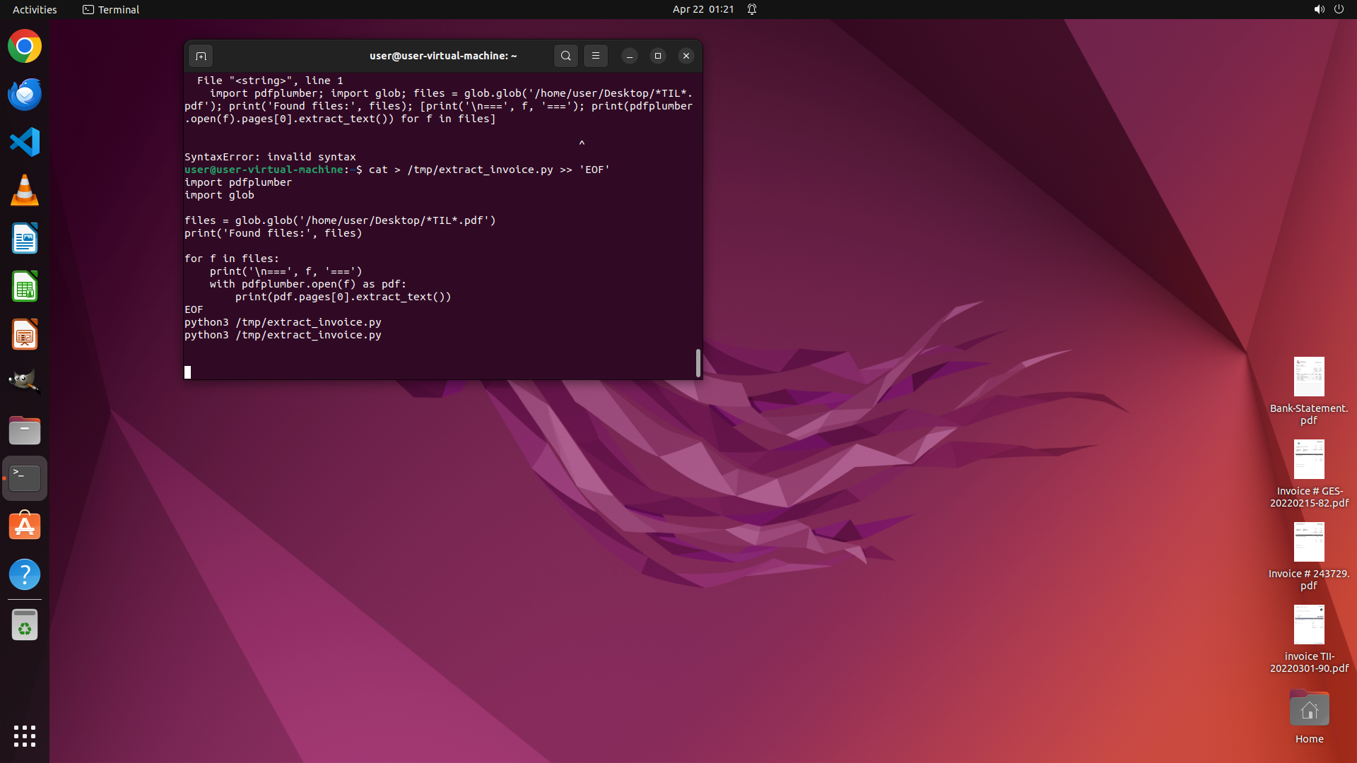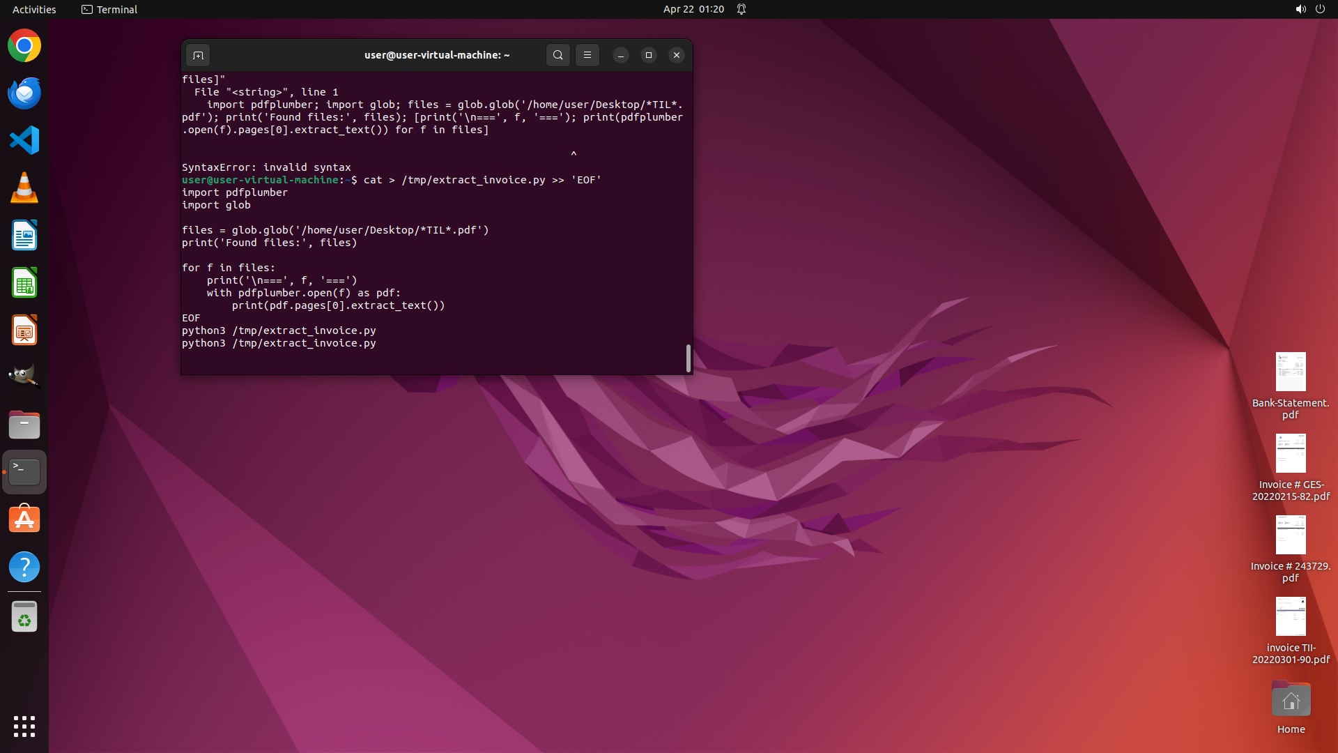 3. 命令 `python3 /tmp/extract_invoice.py` 已输入并准备执行