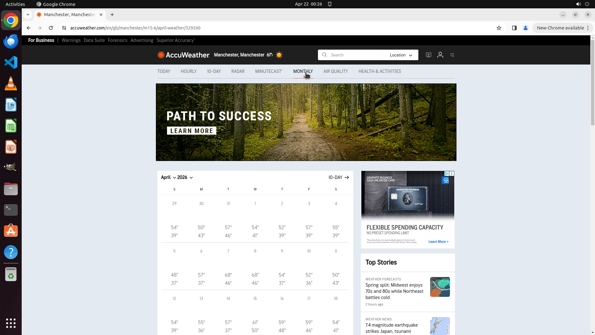 - The URL confirms we're on "april-weather/329260" for Manchester