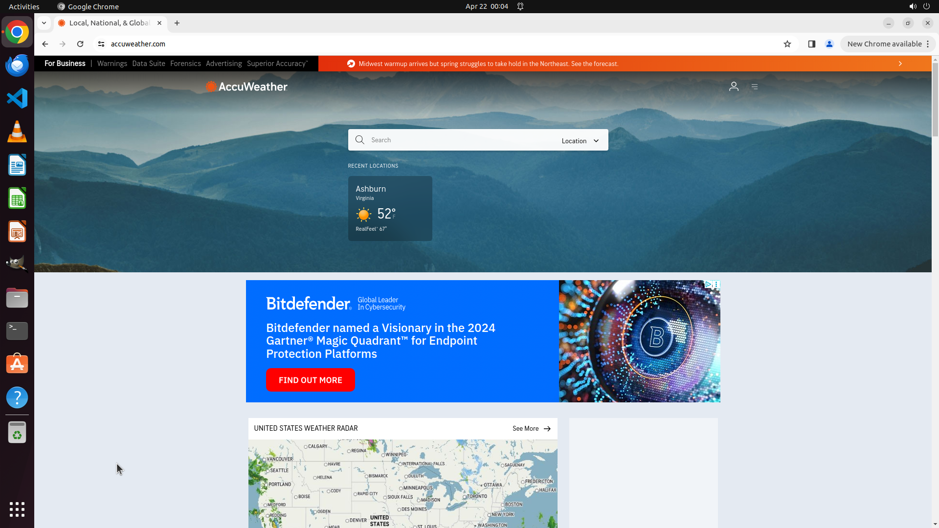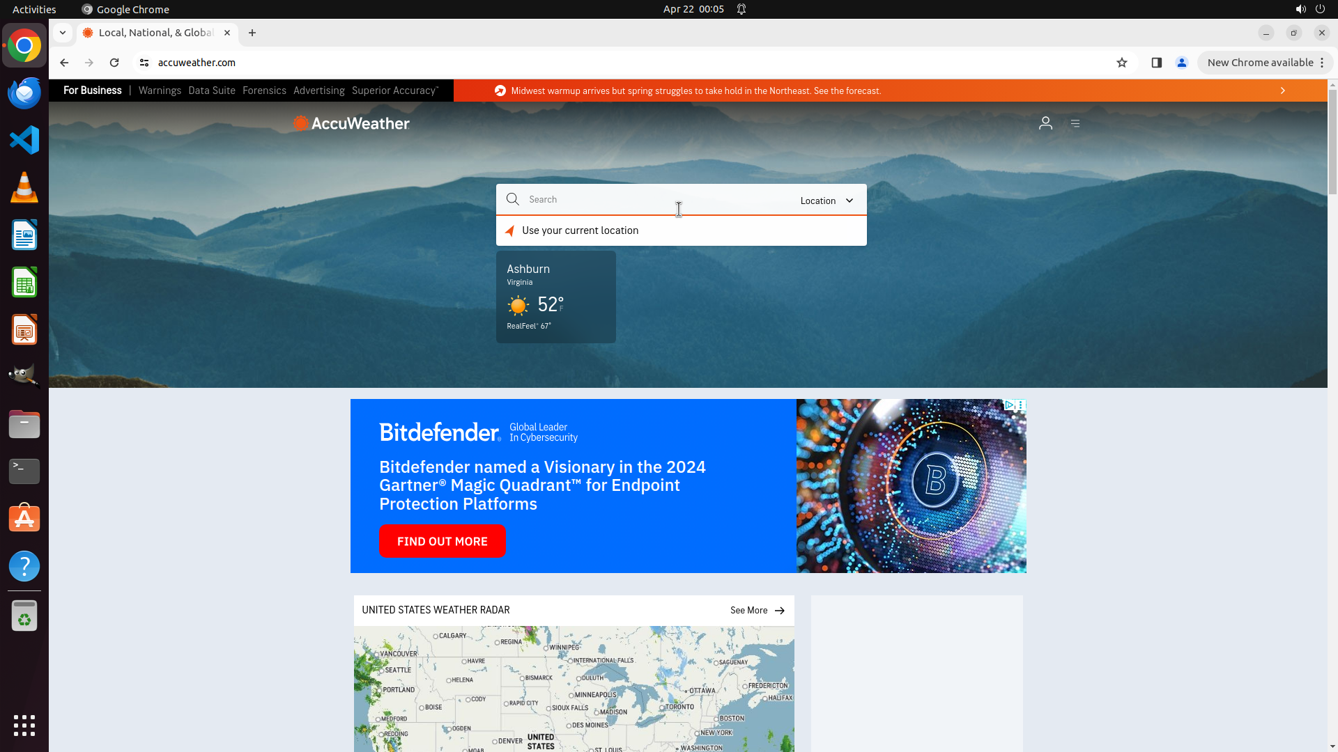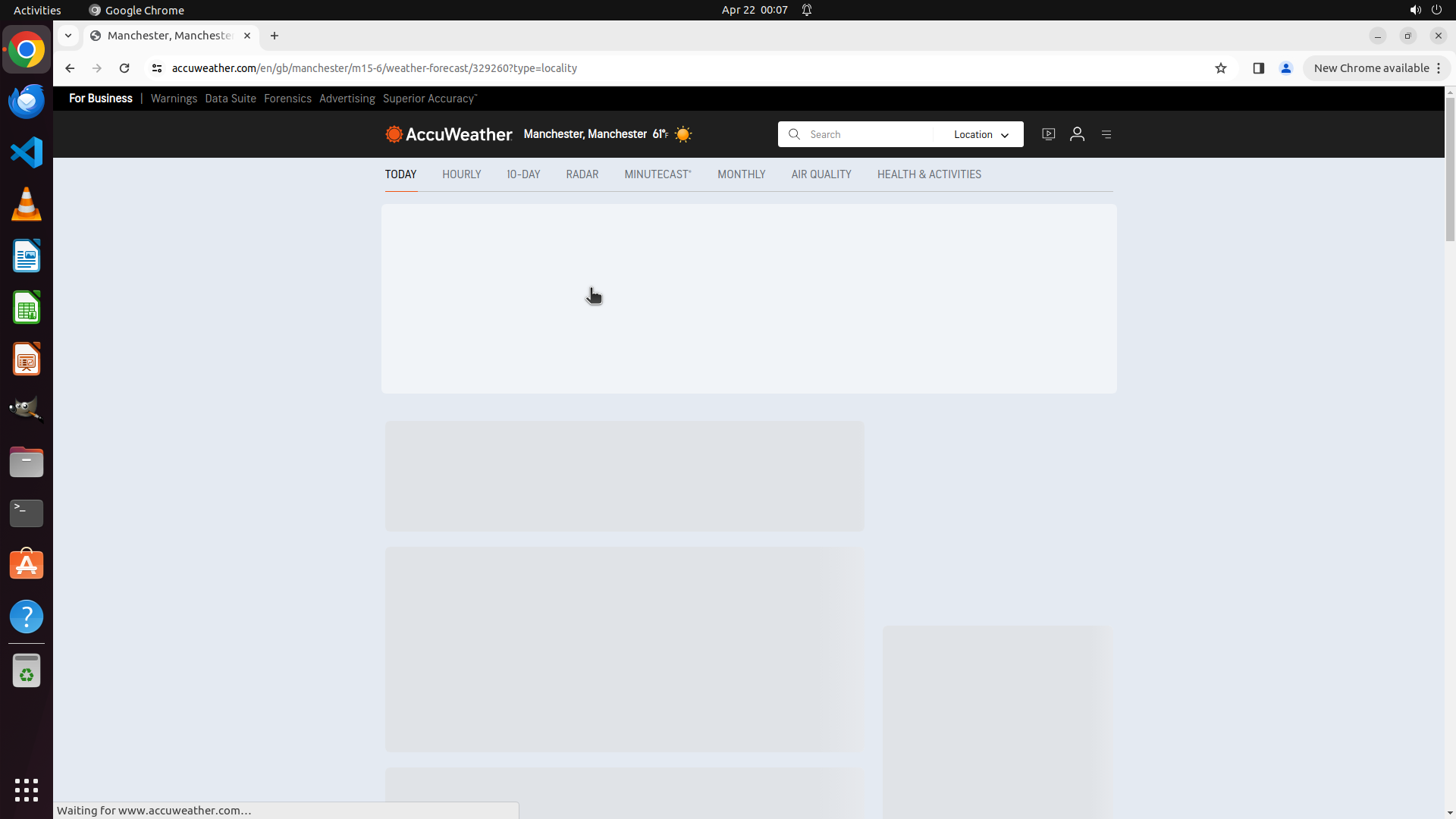 - The page is still loading content (showing "Waiting for www.accuweather.com..." at the bottom)
