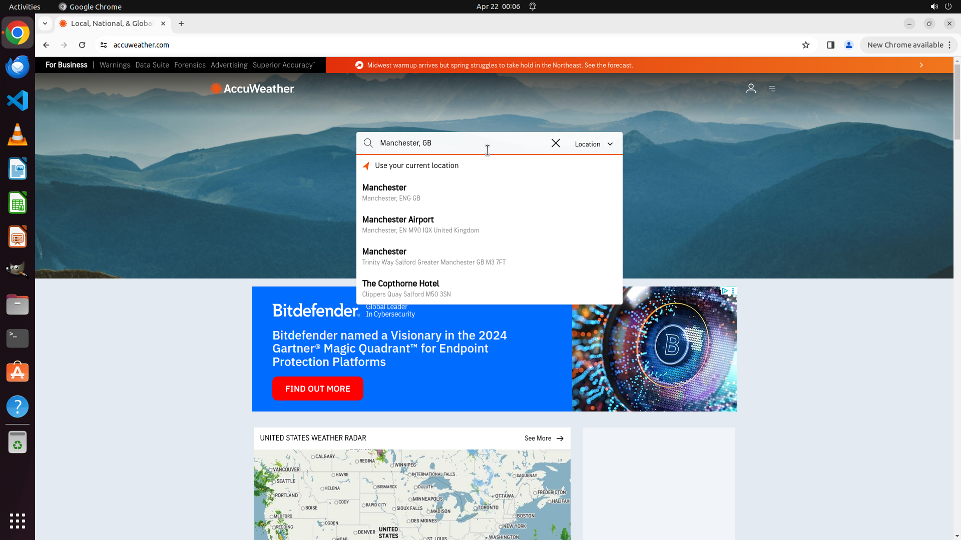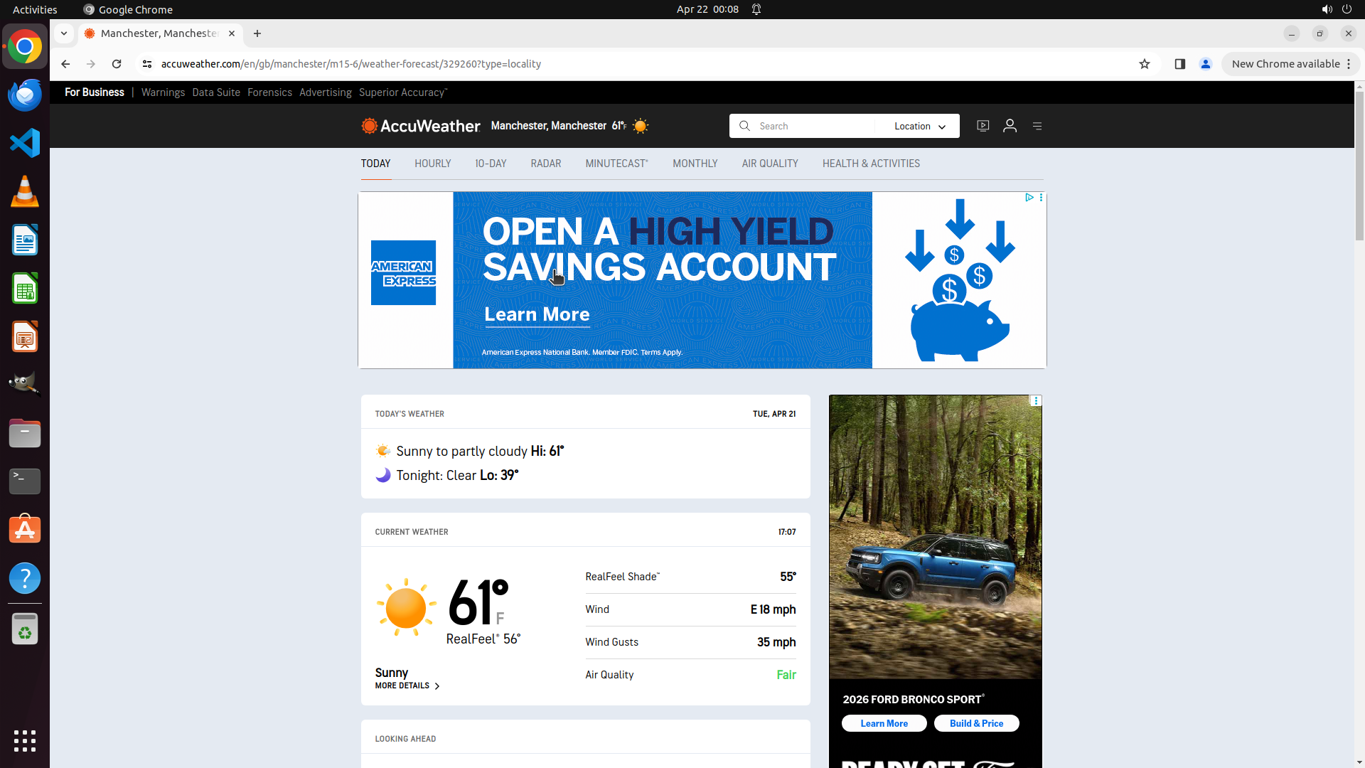 - The page header displays "AccuWeather Manchester, Manchester 61°"