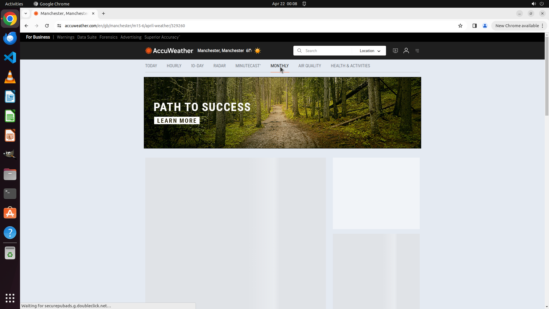 - The monthly forecast page for Manchester, GB is fully loaded and displaying correctly