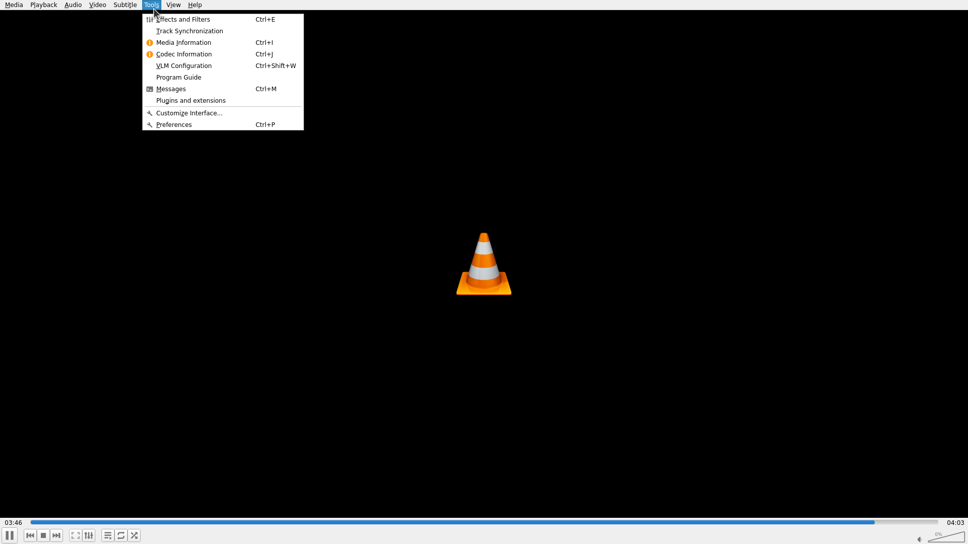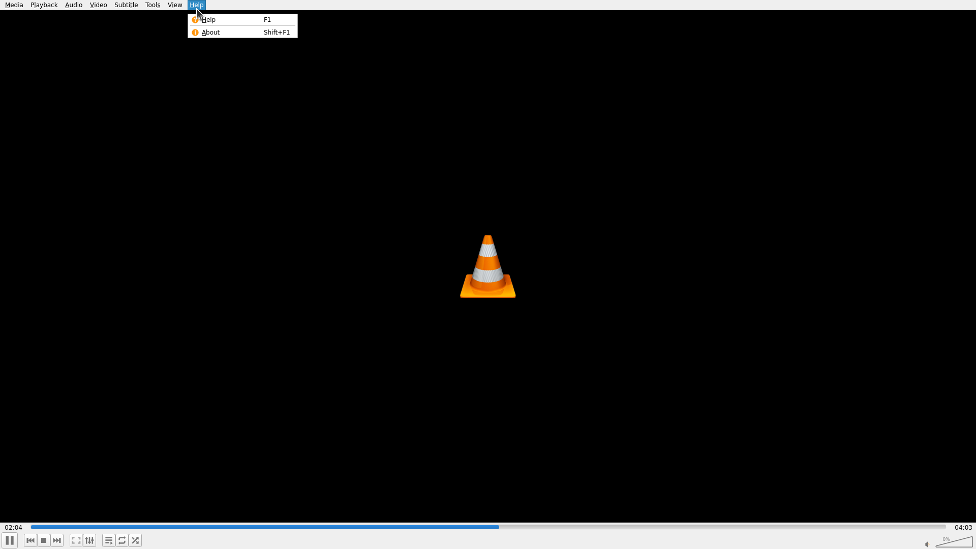 - VLC 窗口处于活动状态,显示其标志性的交通锥图标