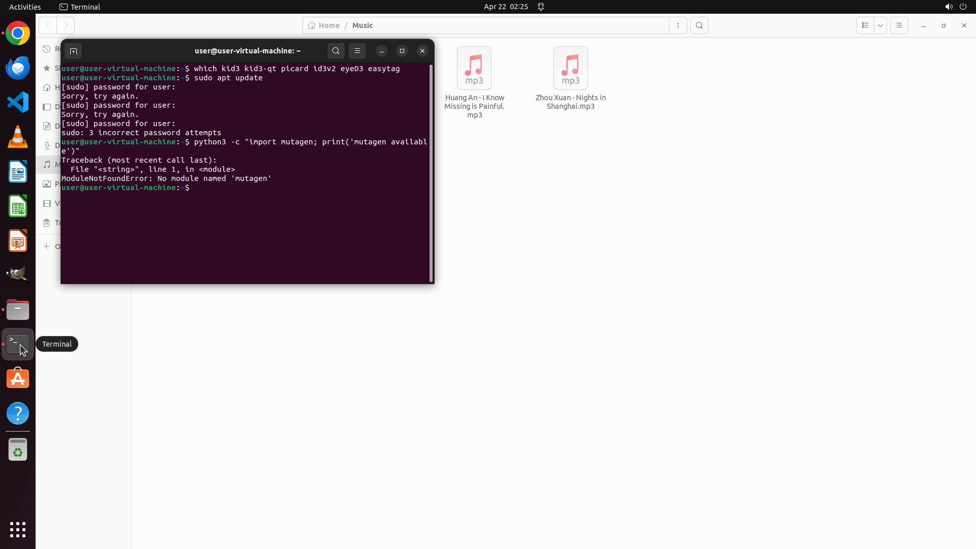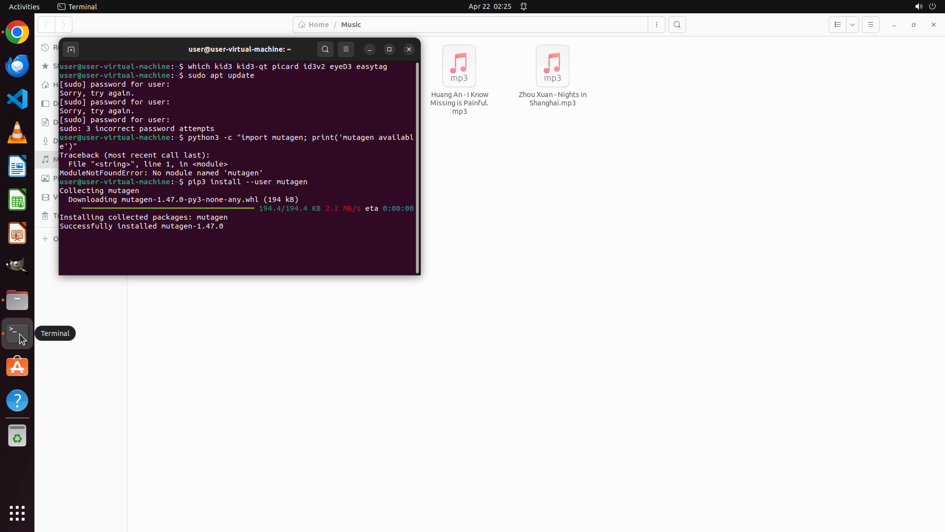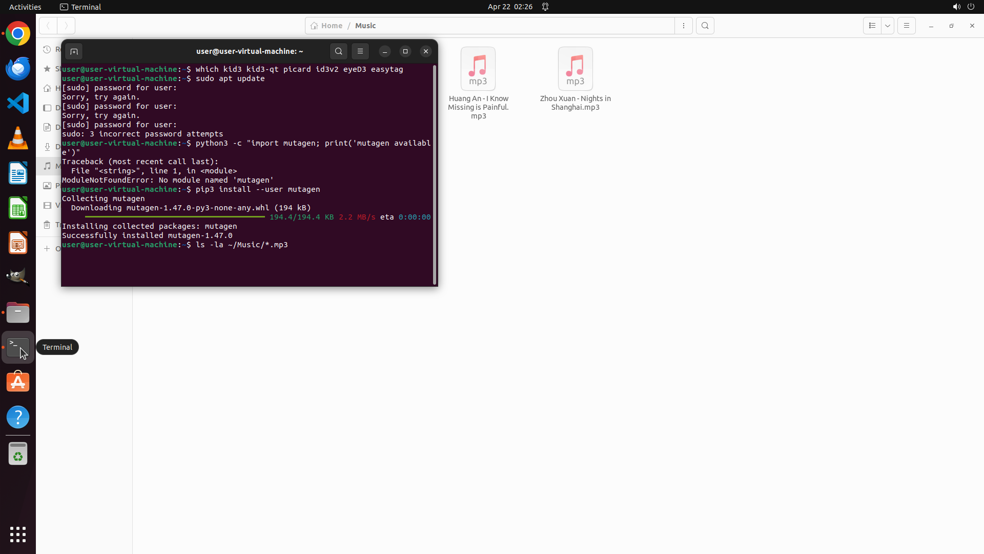 4. 策略树中的任务 1(安装 Kid3)由于无法获取 sudo 密码而受阻,但我们已成功安装 mutagen 作为替代方案