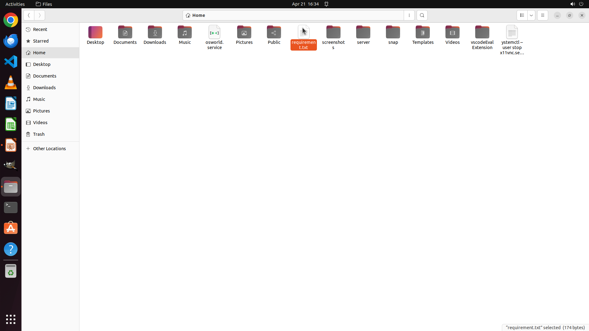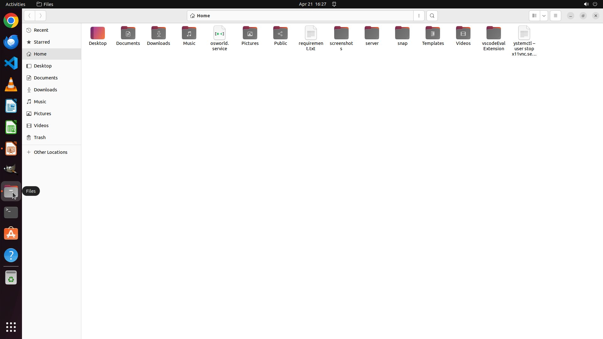 - osworld.service, requirement.txt, screenshots, server, snap, Templates, Videos, vscodeEvalExtension 等