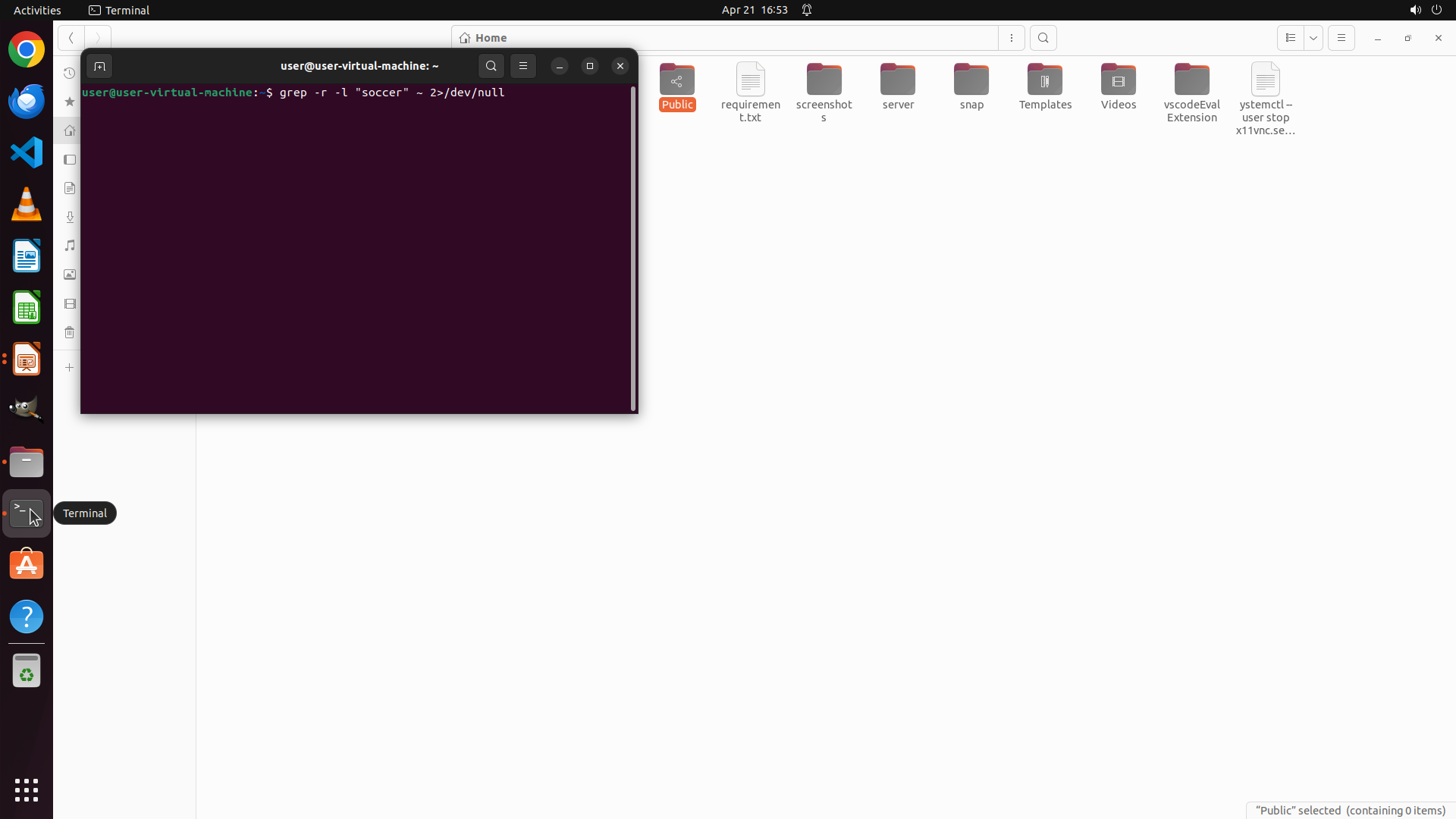 TYPING "grep -r -l "football" ~ 2>/dev/null"