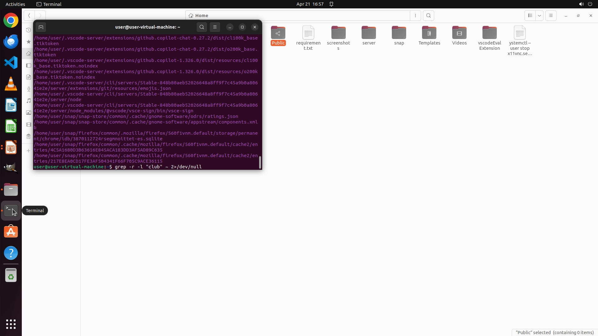 TYPING "grep -r -l "club" ~ 2>/dev/null"