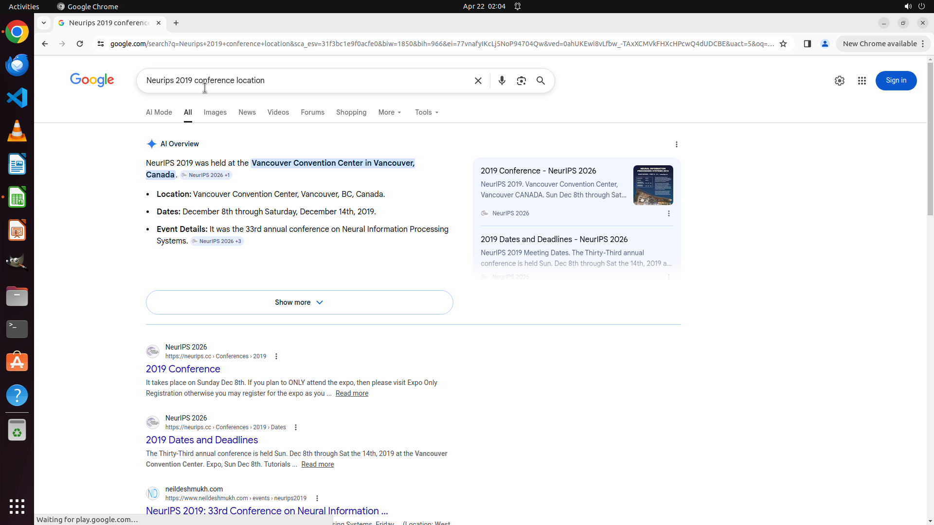 下一步操作:点击Chrome图标打开浏览器,开始搜索第一个会议信息。</think>