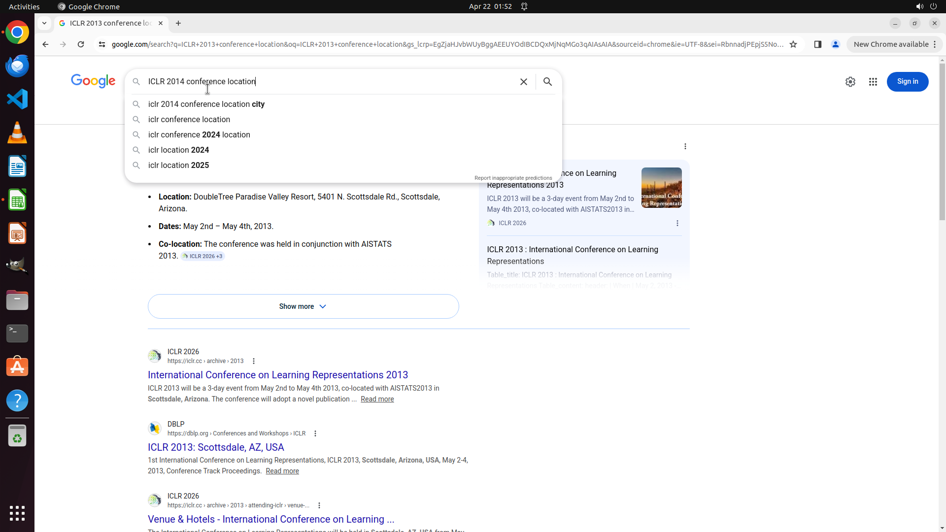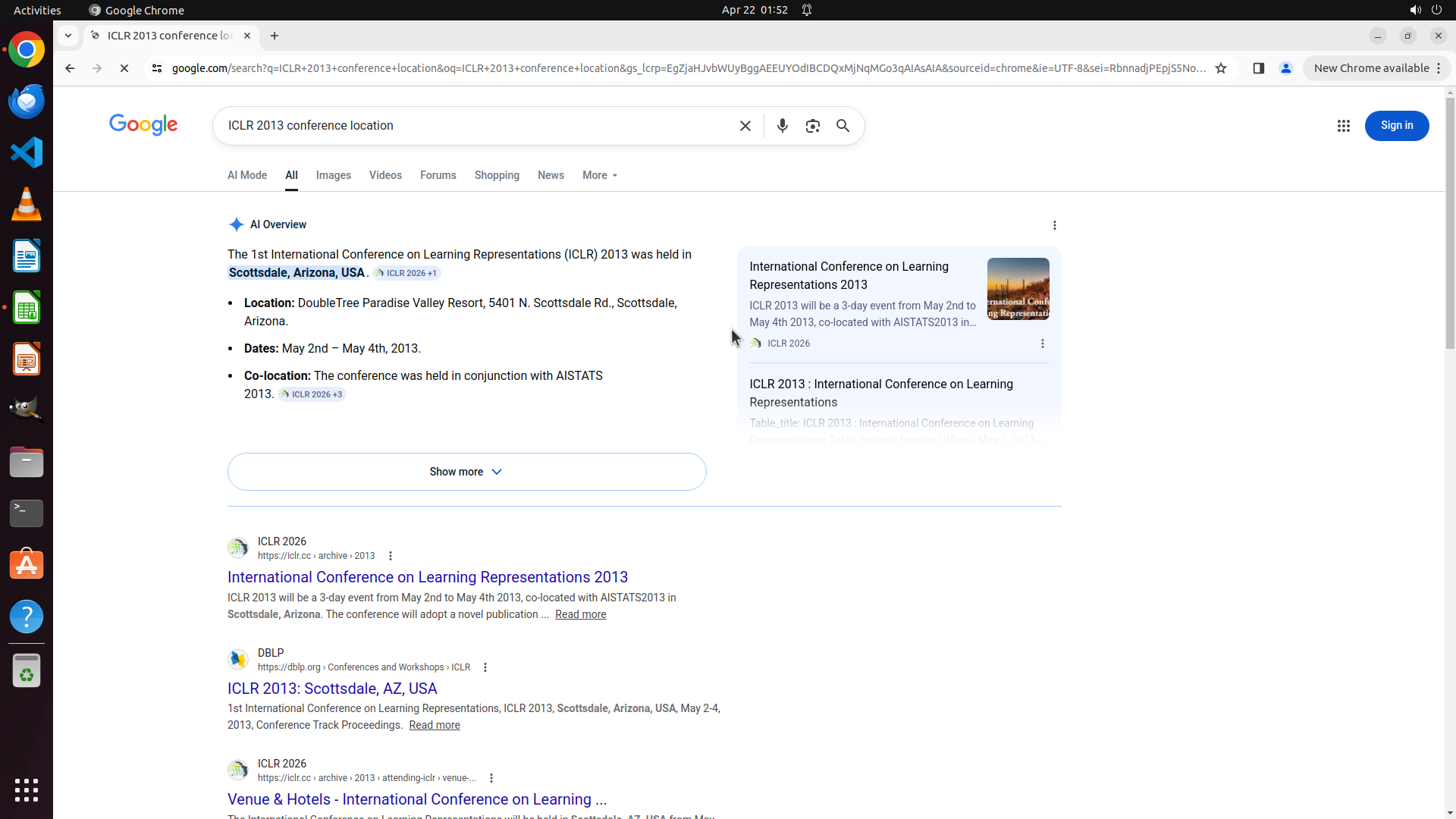 搜索"ICLR 2013 conference location"成功,结果显示: