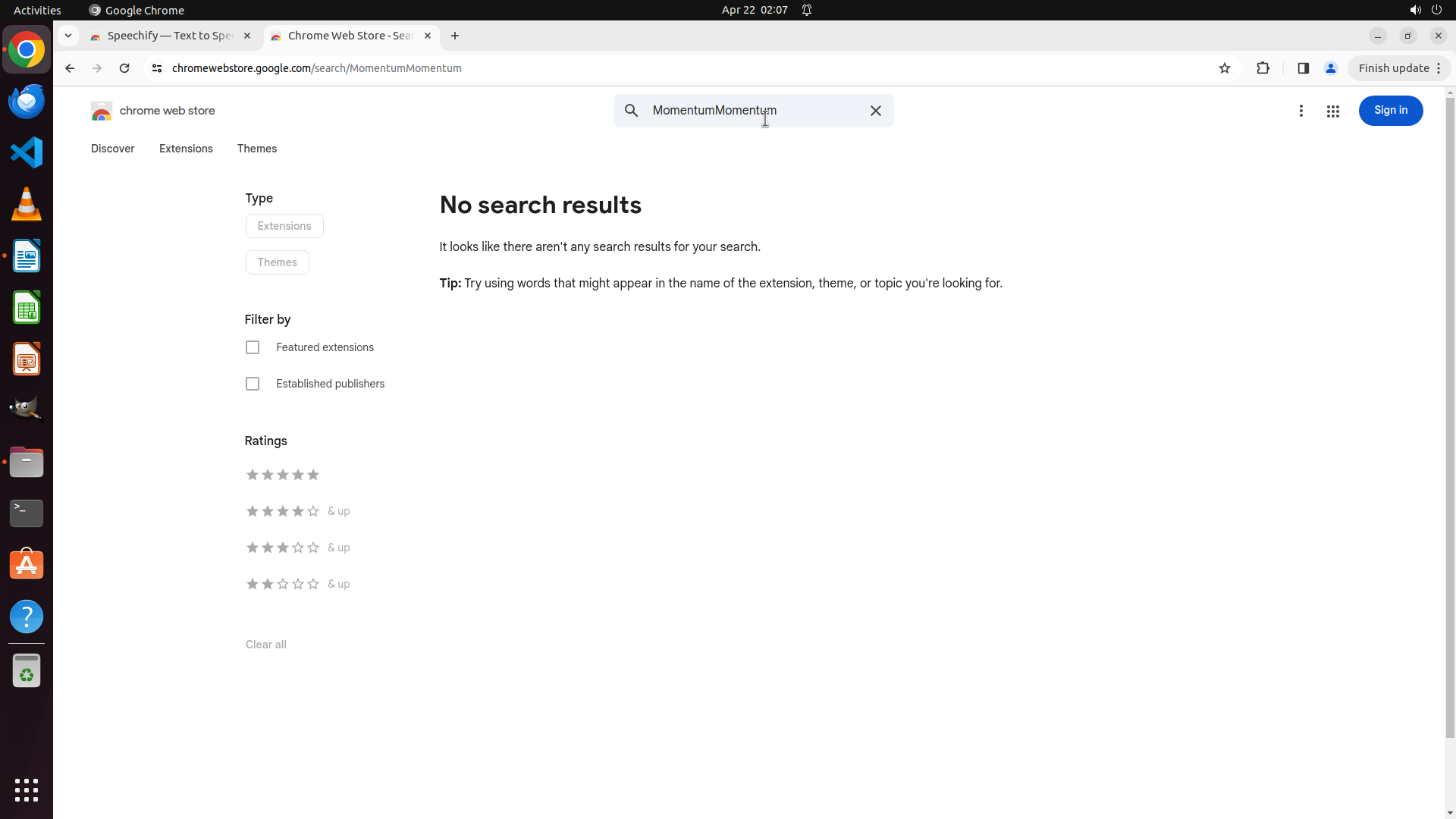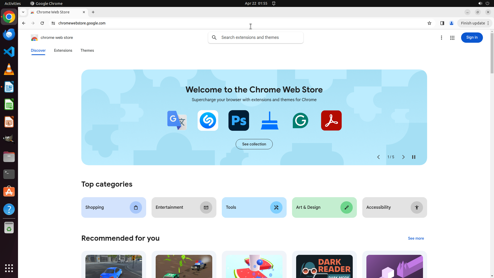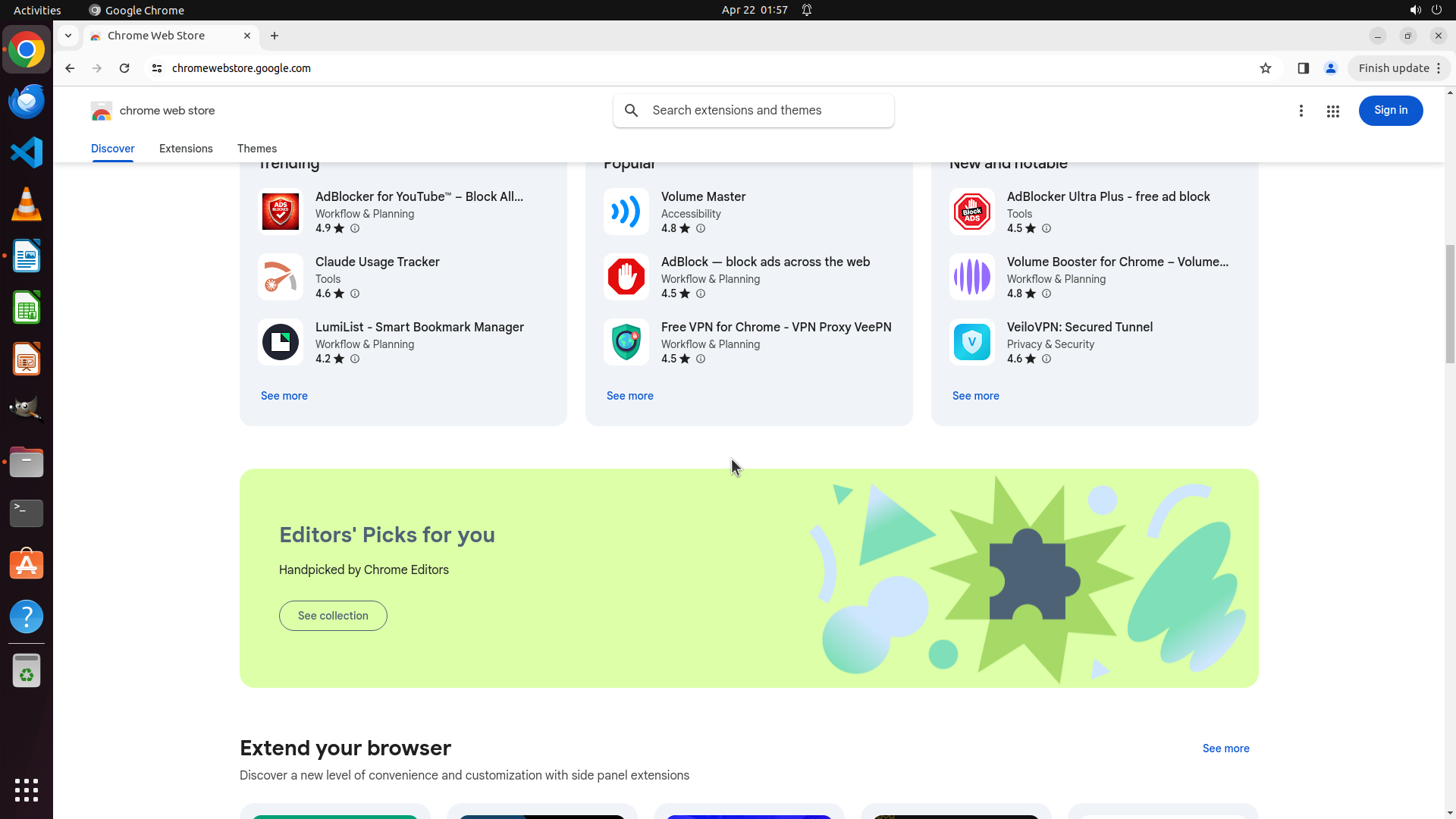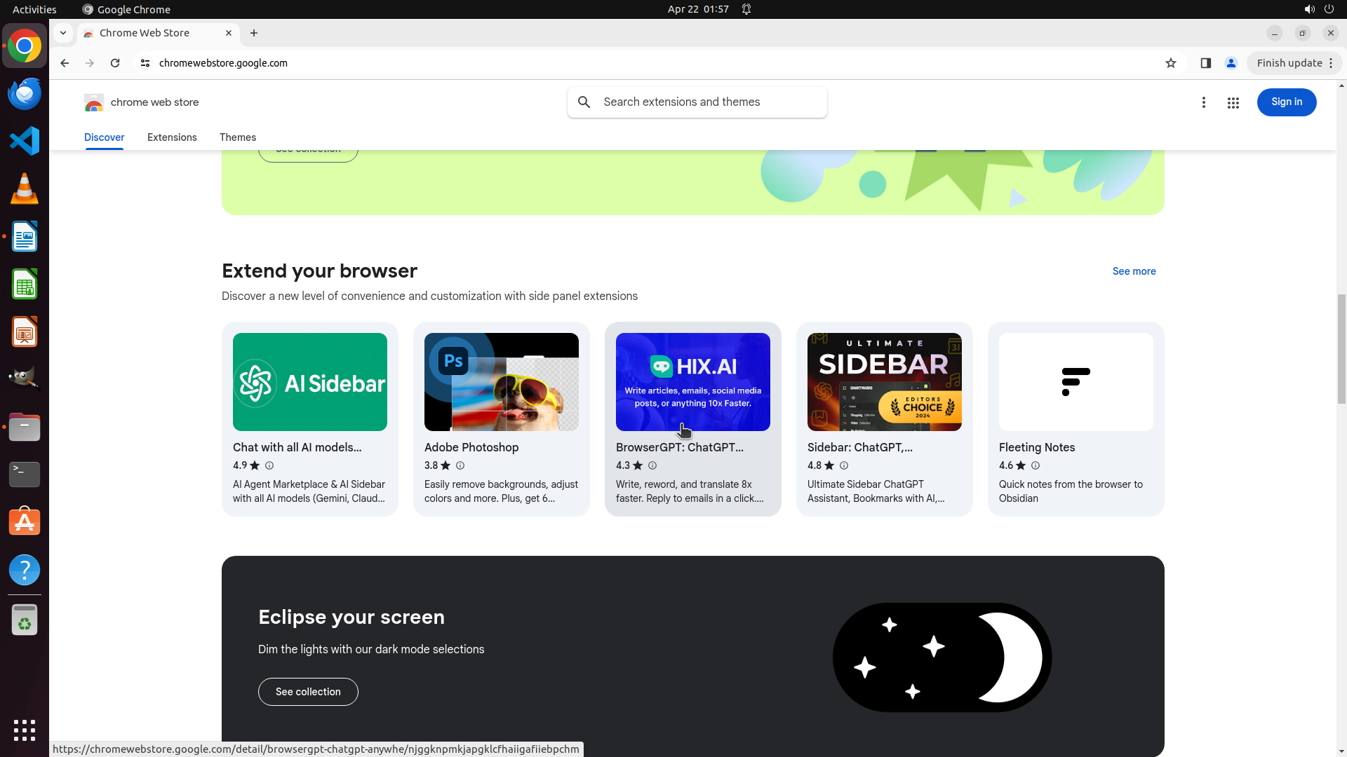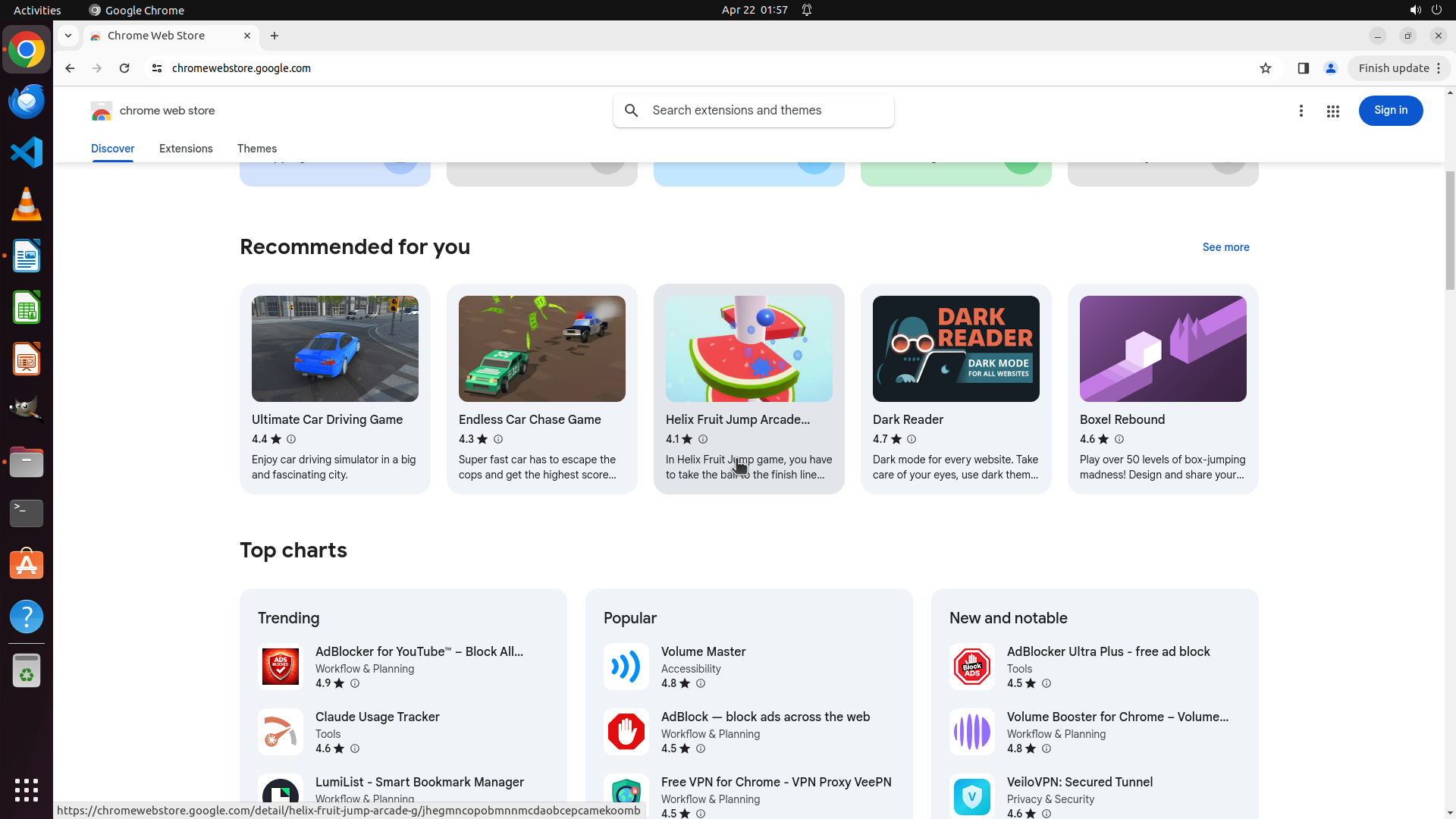 根据历史操作记录,Chrome 之前已经成功打开并导航到了 Chrome Web Store。我不小心点击到了文件管理器图标导致切换了窗口。