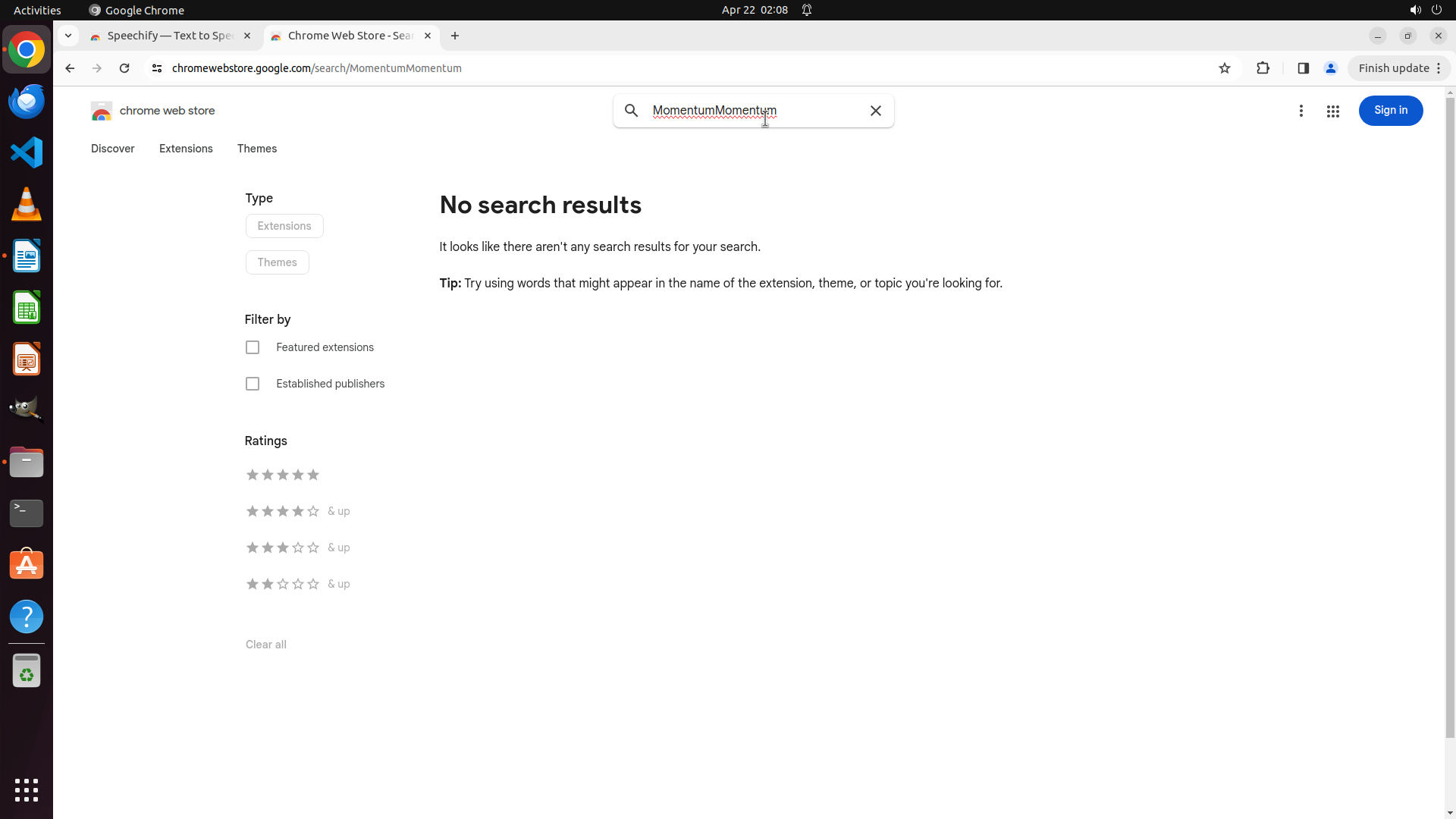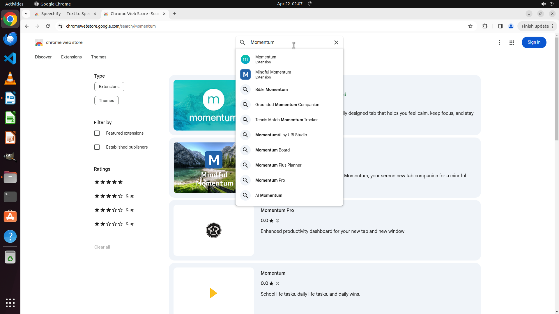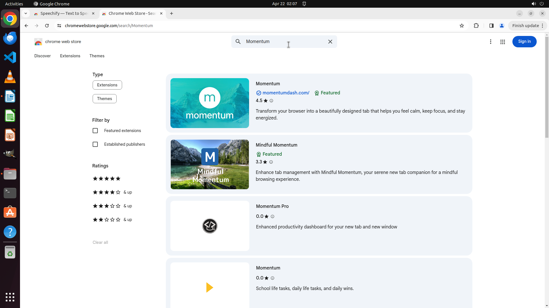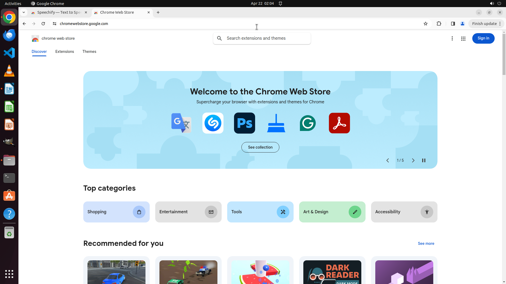 根据历史操作记录,Chrome 之前已经成功打开并导航到了 Chrome Web Store。我不小心点击到了文件管理器图标导致切换了窗口。