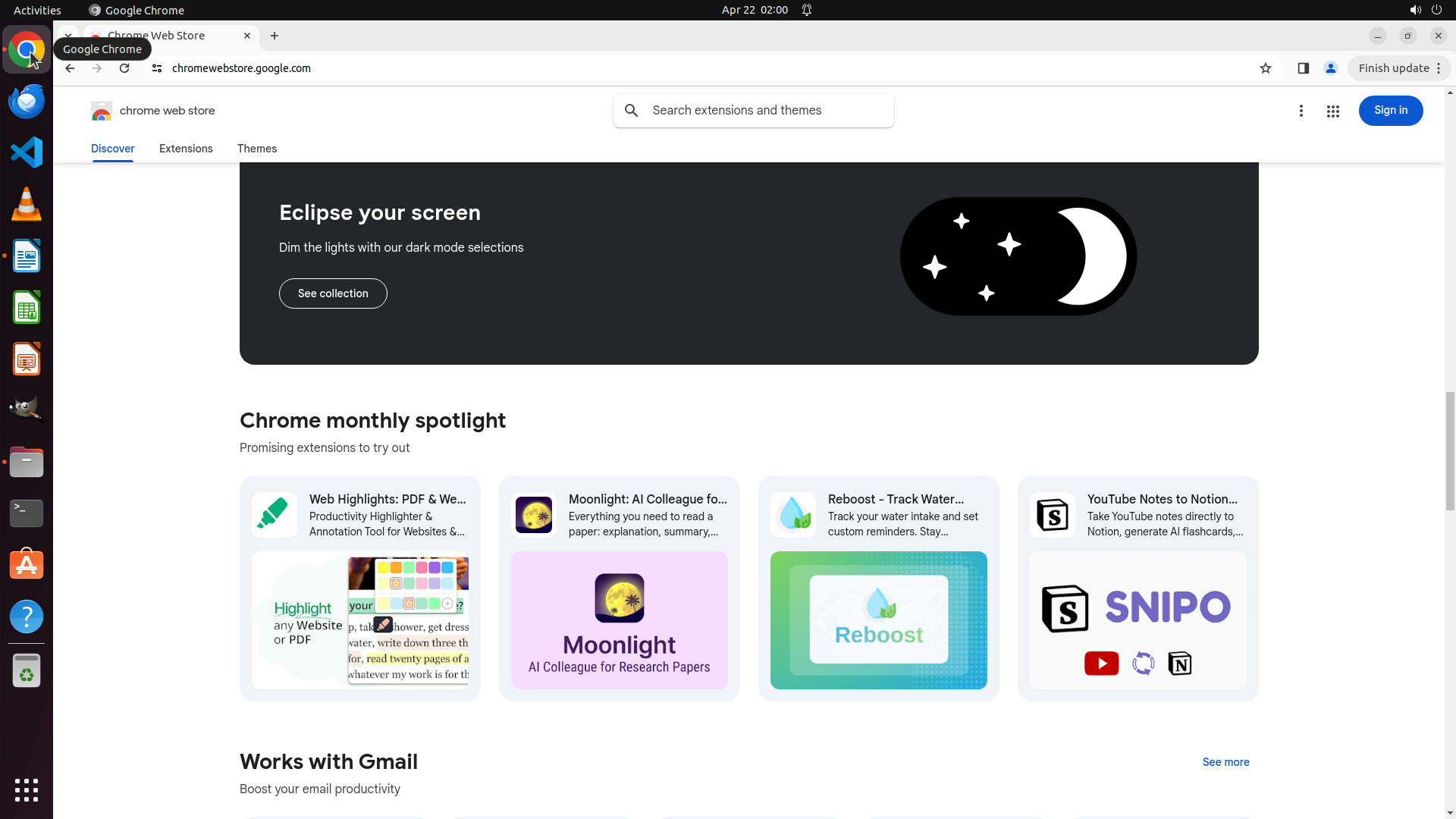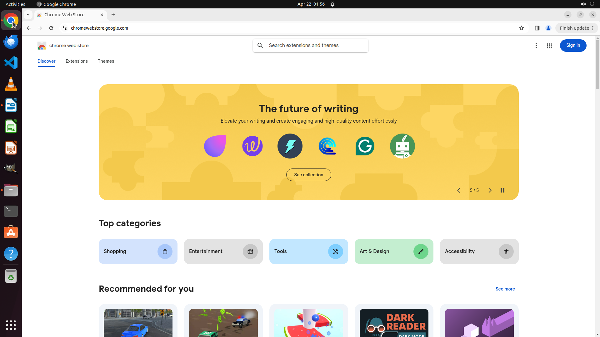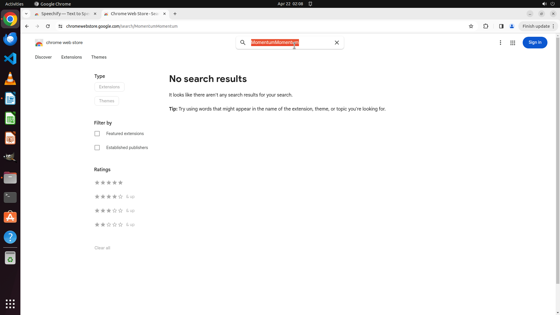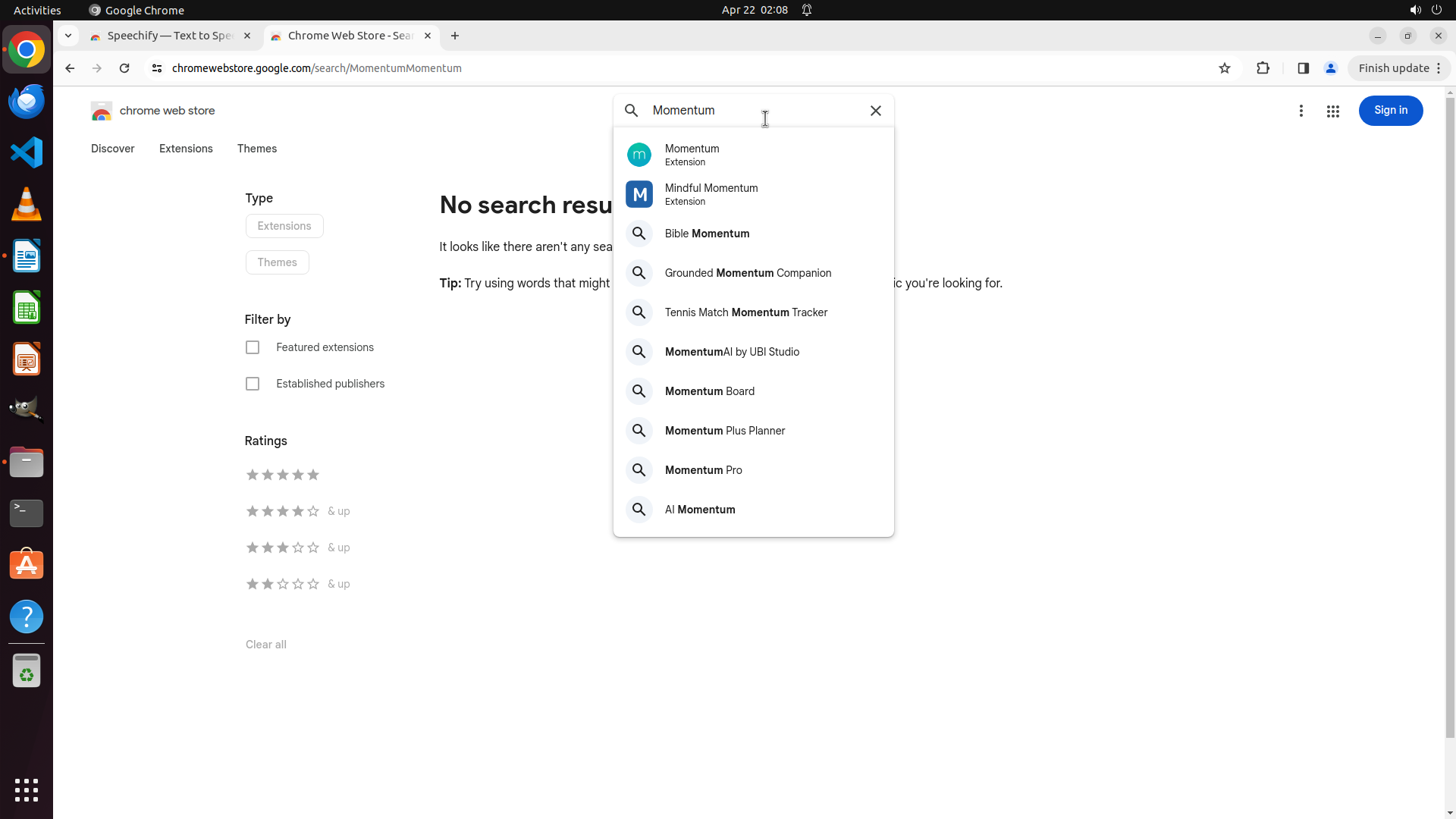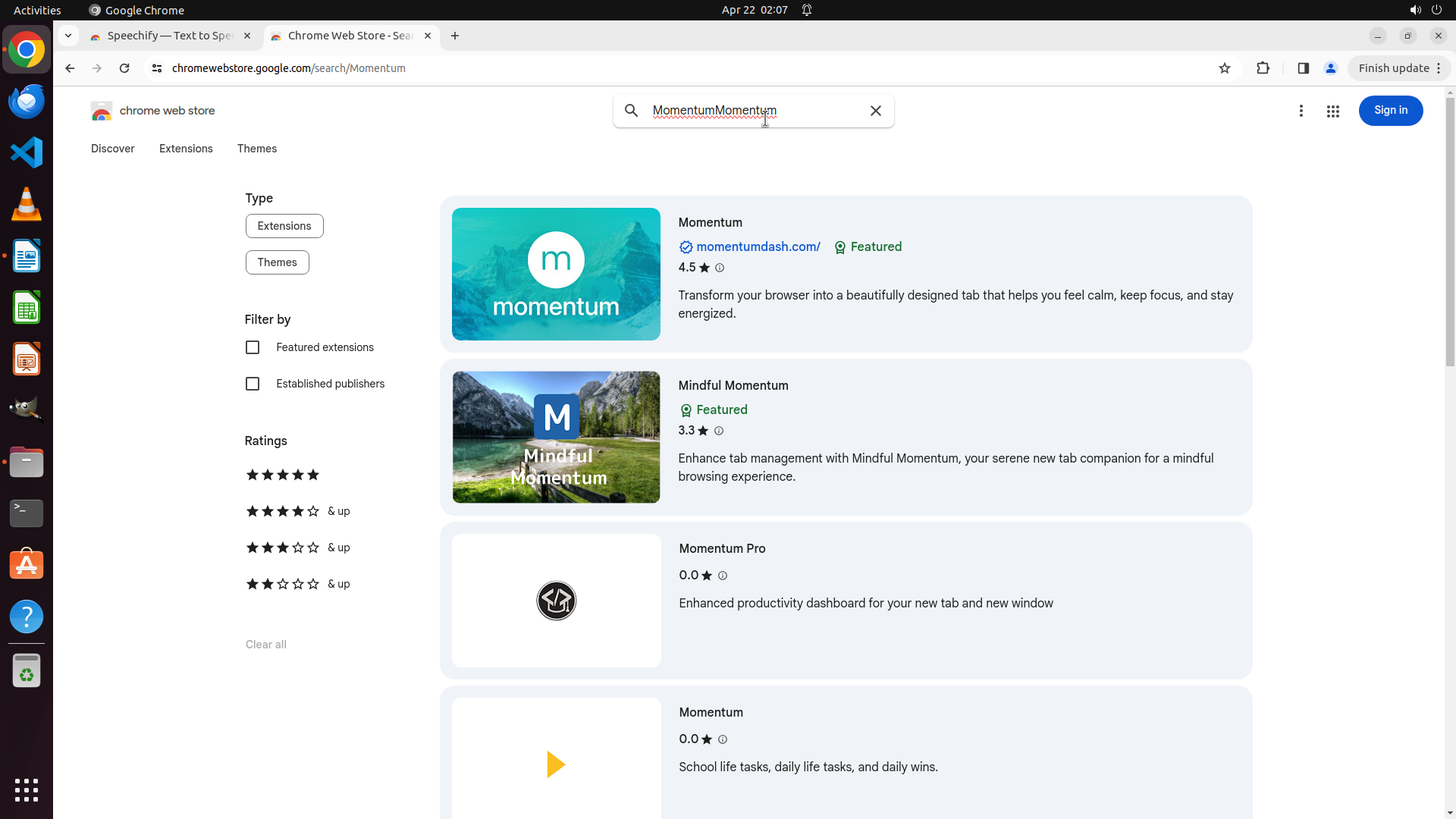 根据历史操作记录,Chrome 之前已经成功打开并导航到了 Chrome Web Store。我不小心点击到了文件管理器图标导致切换了窗口。