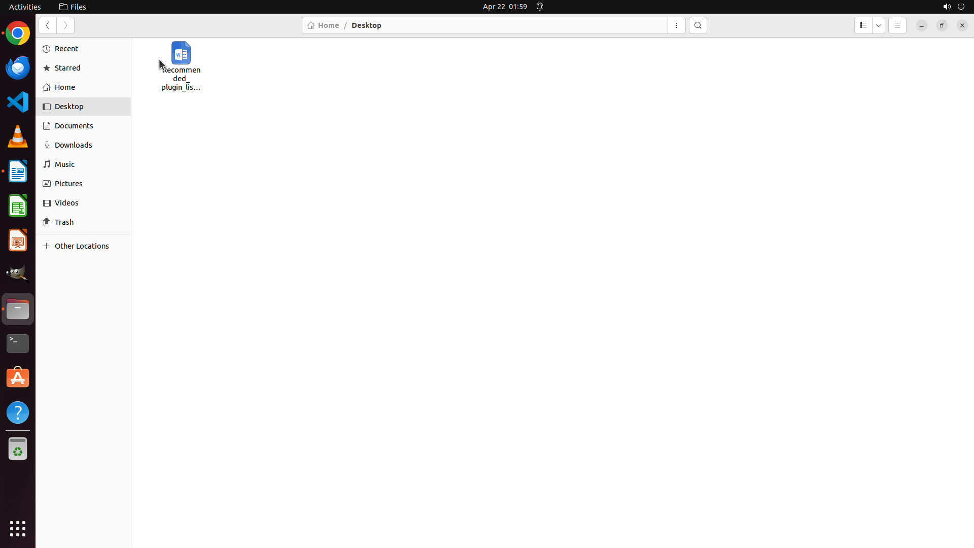 1. **LibreOffice Writer** is currently open with a document named "Recommended_plugin_list.docx"