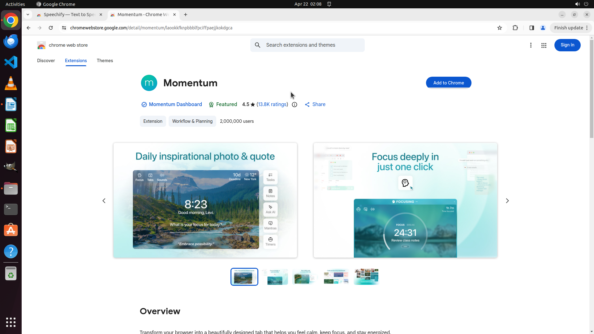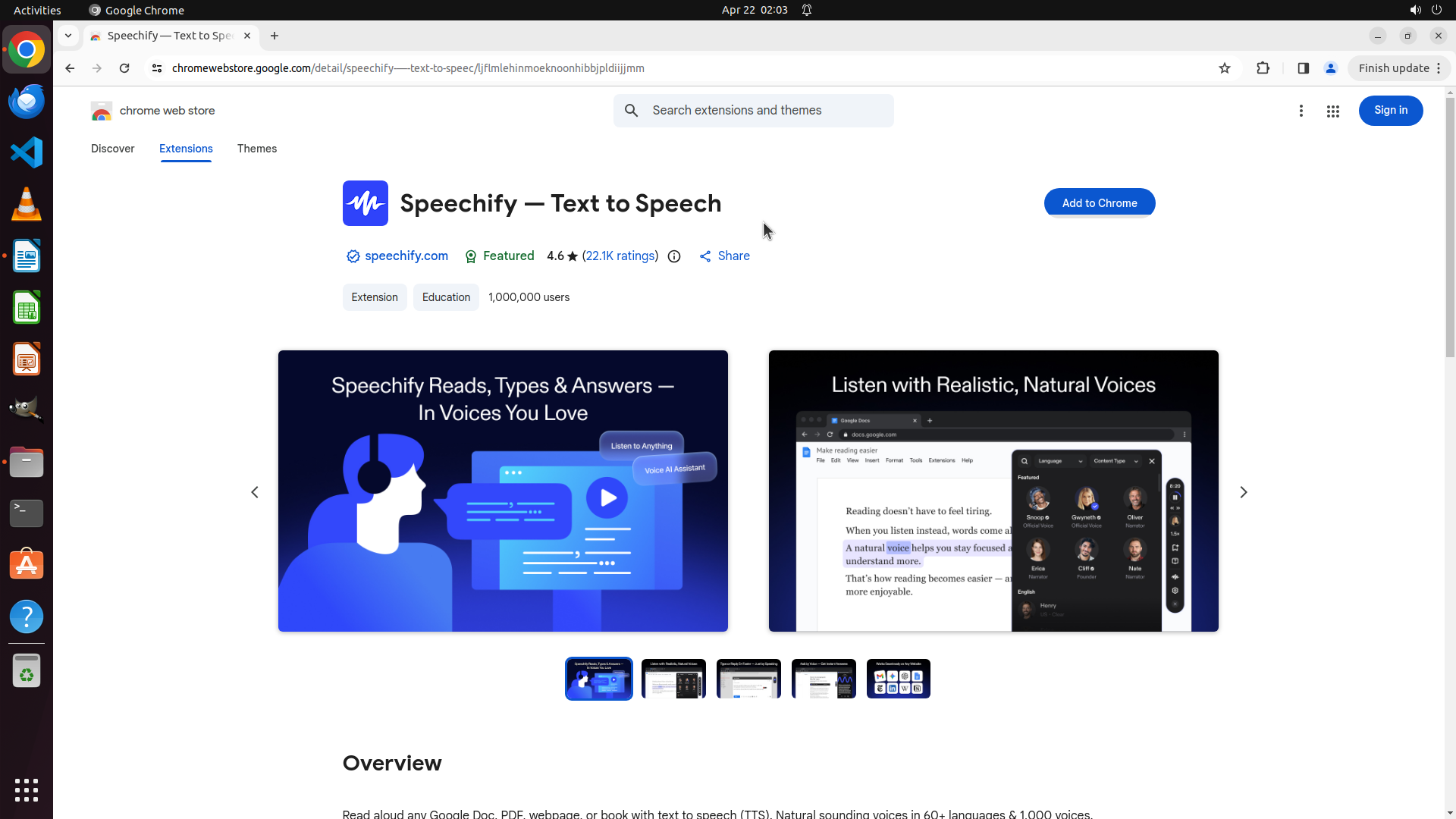 我现在在 Speechify — Text to Speech 的详细页面,这是朋友推荐的第二个插件。我需要: