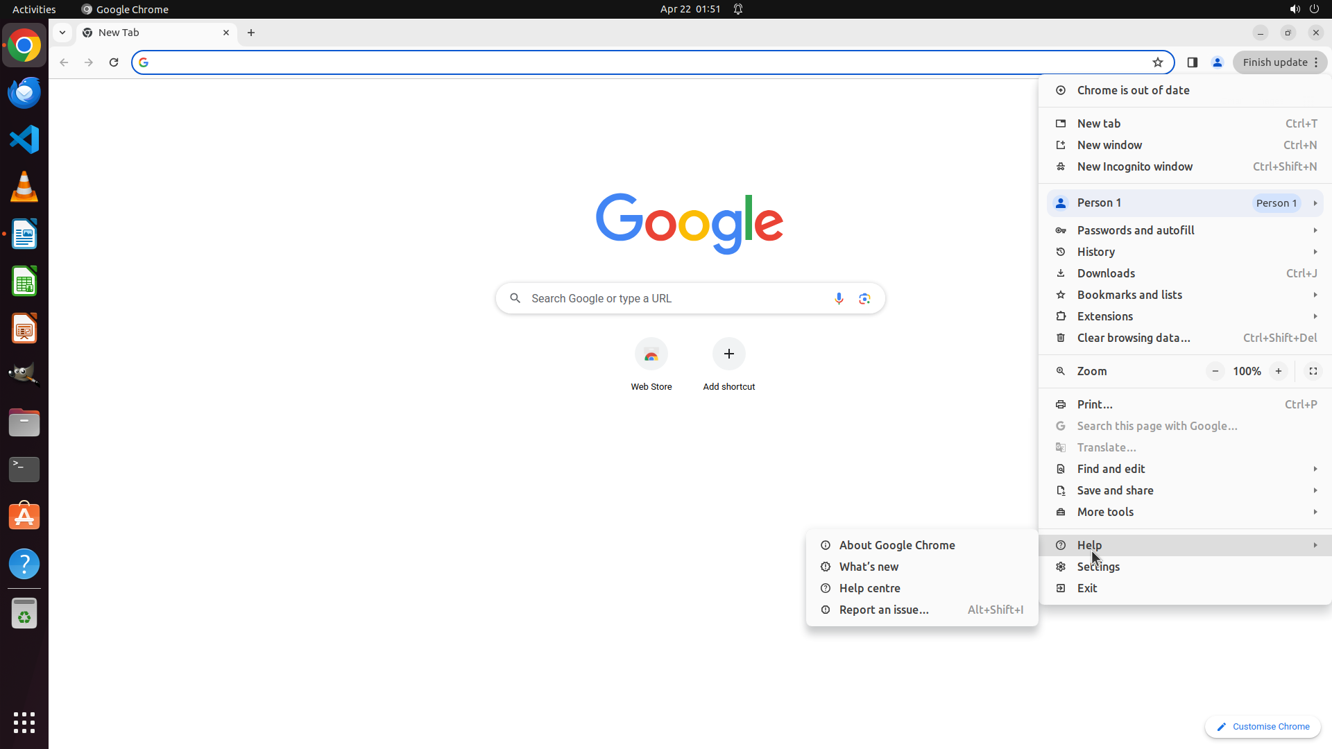2. Once Chrome opens, I can check the version from the menu and also verify internet connectivity by trying to access a website