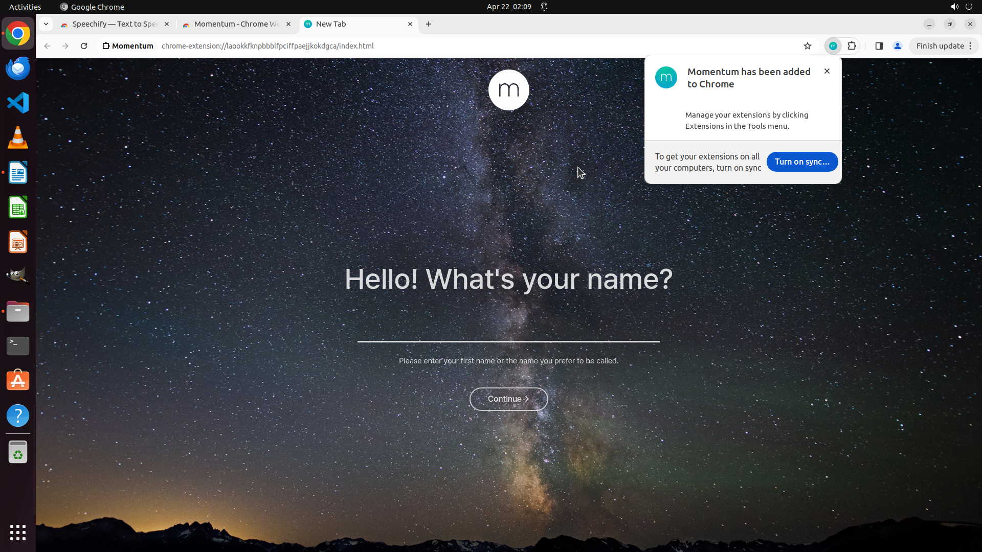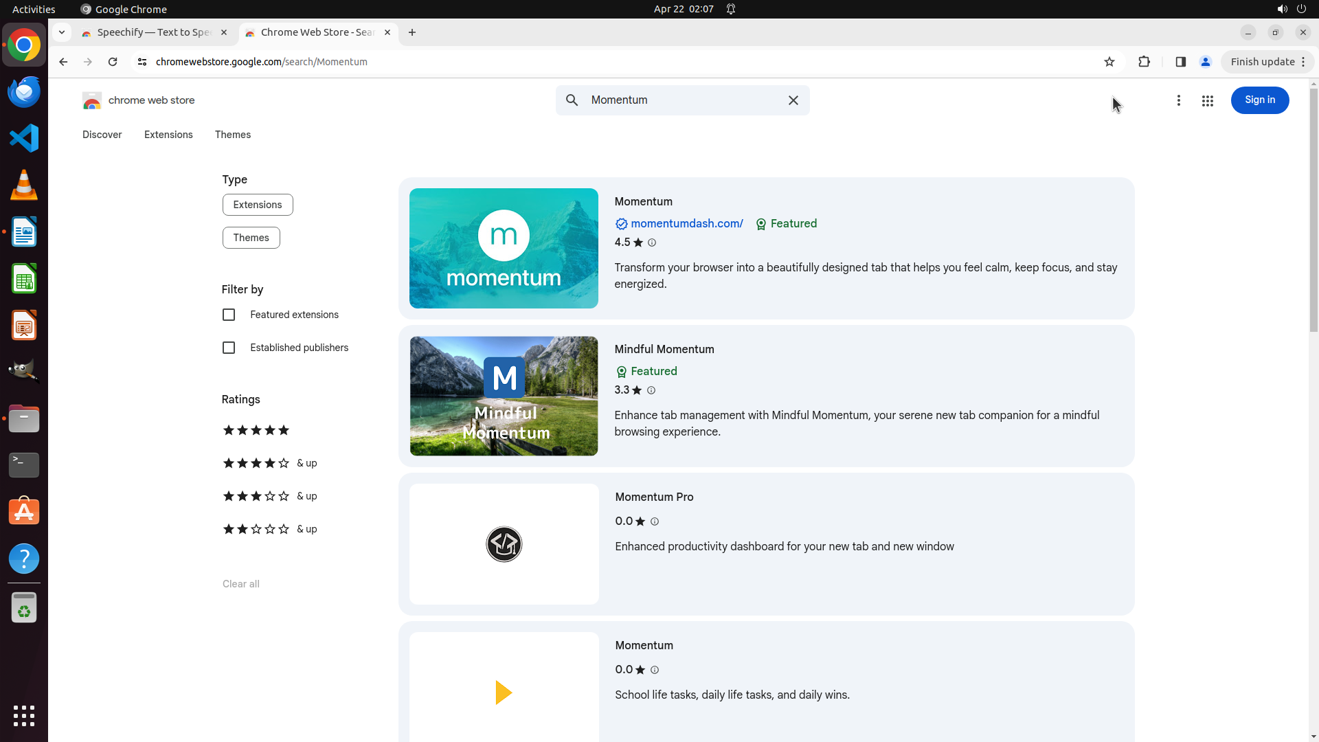 2. 然后继续安装 Momentum 和 Google Translate