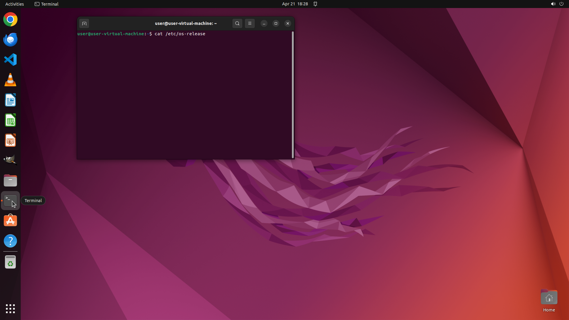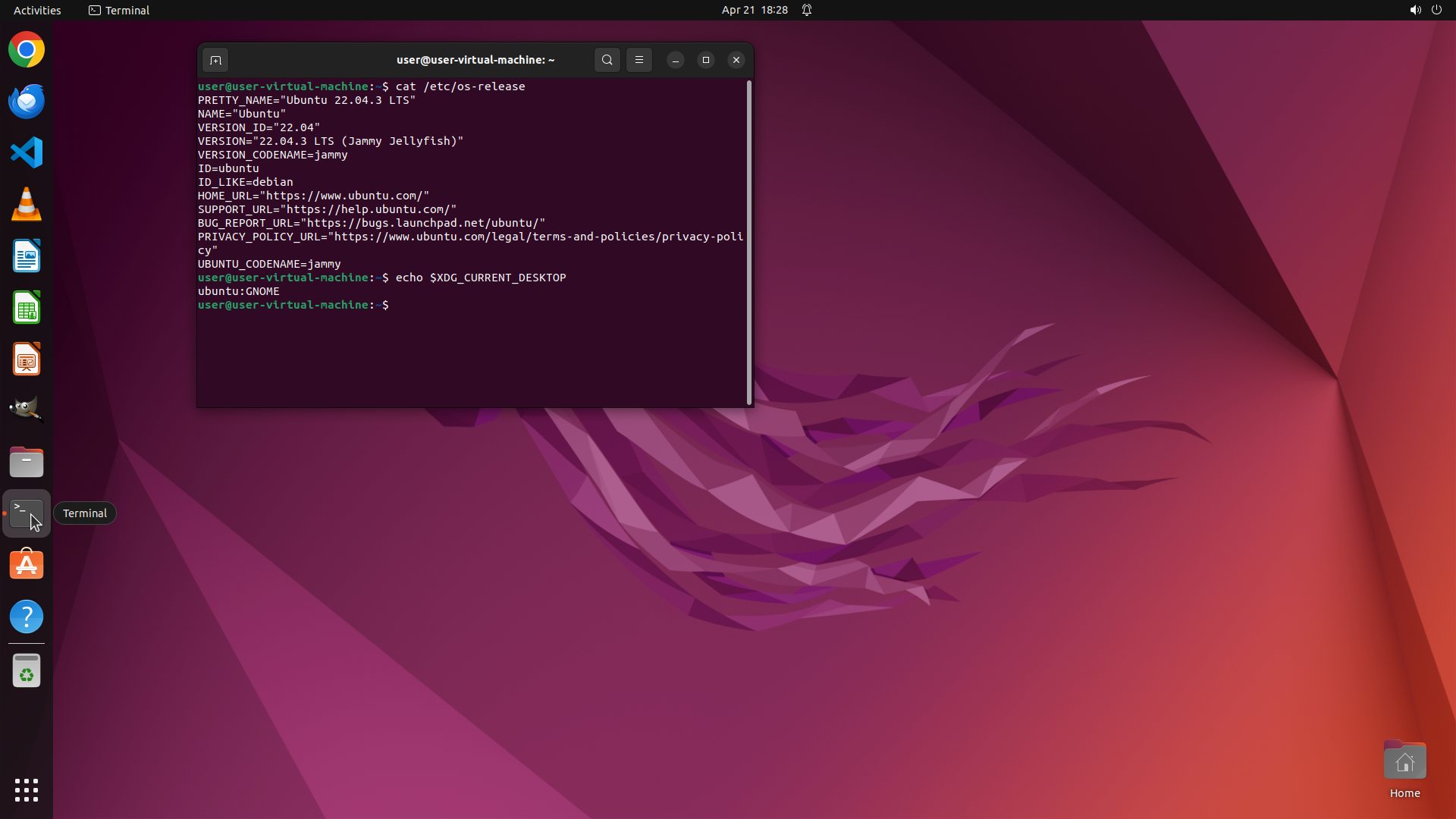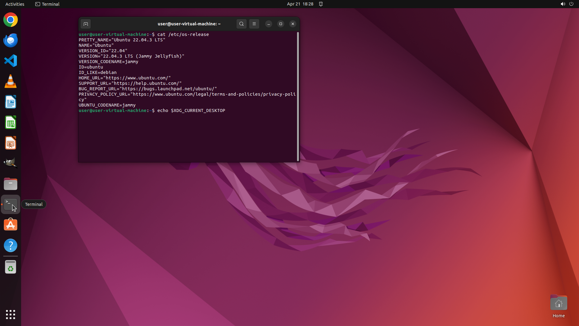 1. Run commands in terminal to check Ubuntu version (cat /etc/os-release) and desktop environment