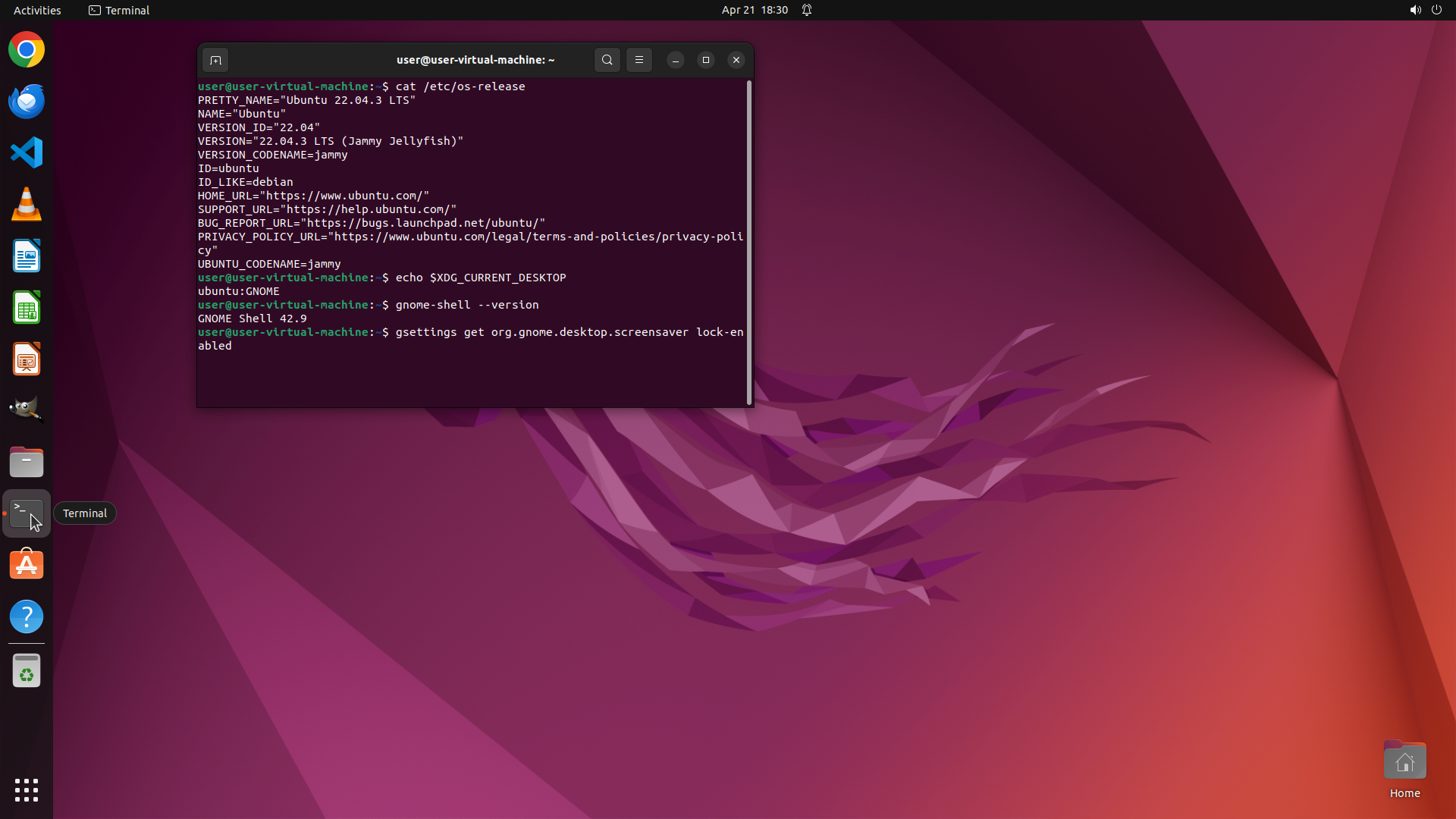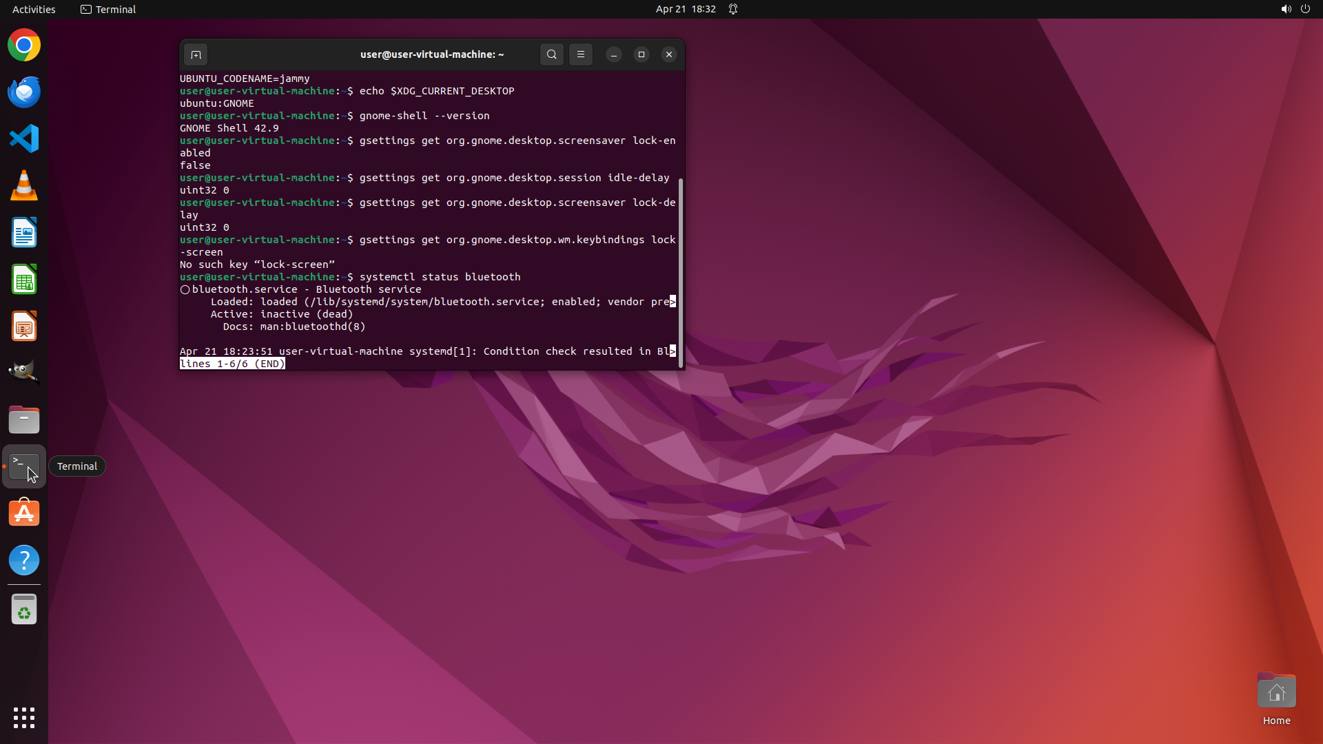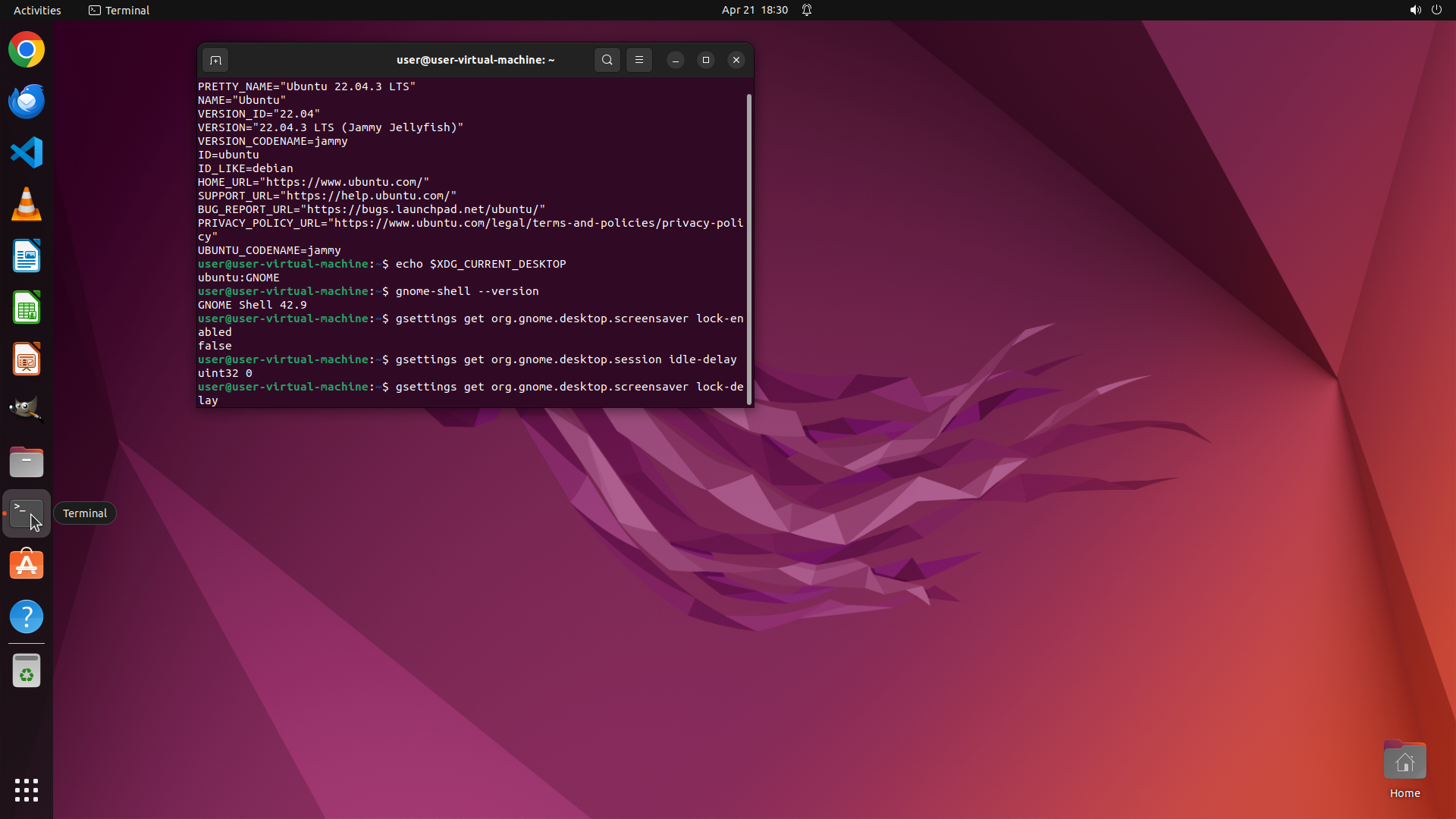 TYPING "gsettings get org.gnome.desktop.screensa…"