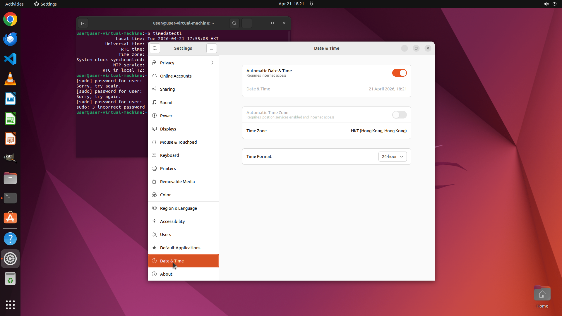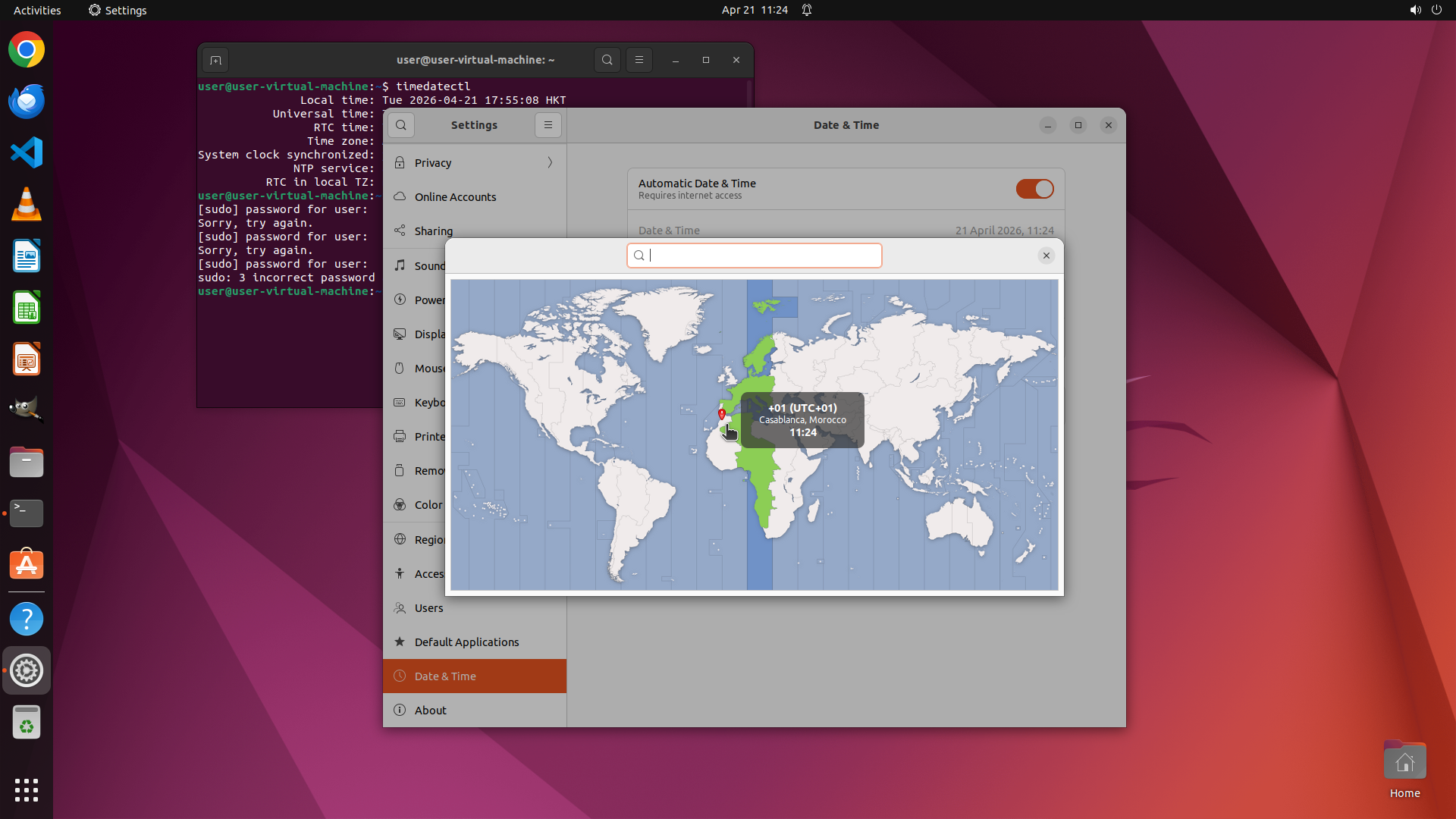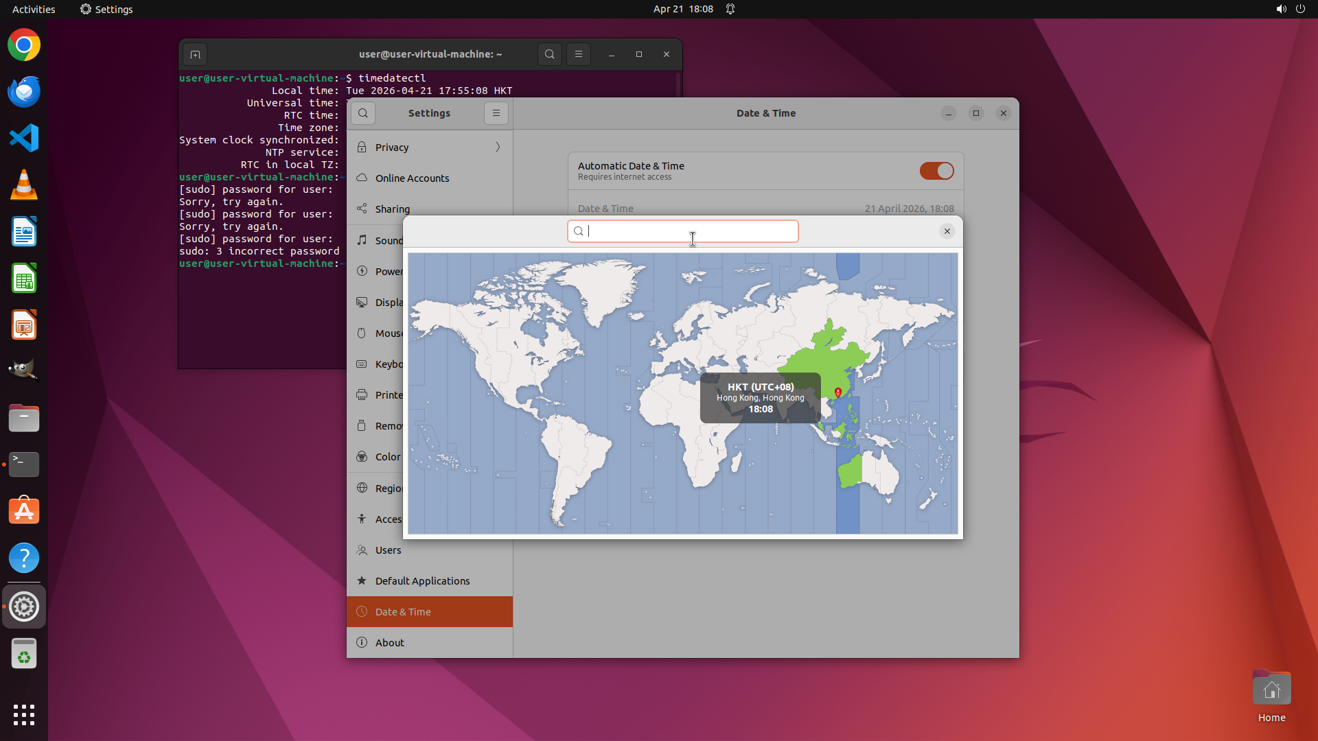 1. 使用 Ubuntu 图形界面设置(Settings)- 可能通过图形界面修改时区不需要密码,或者有更友好的认证方式