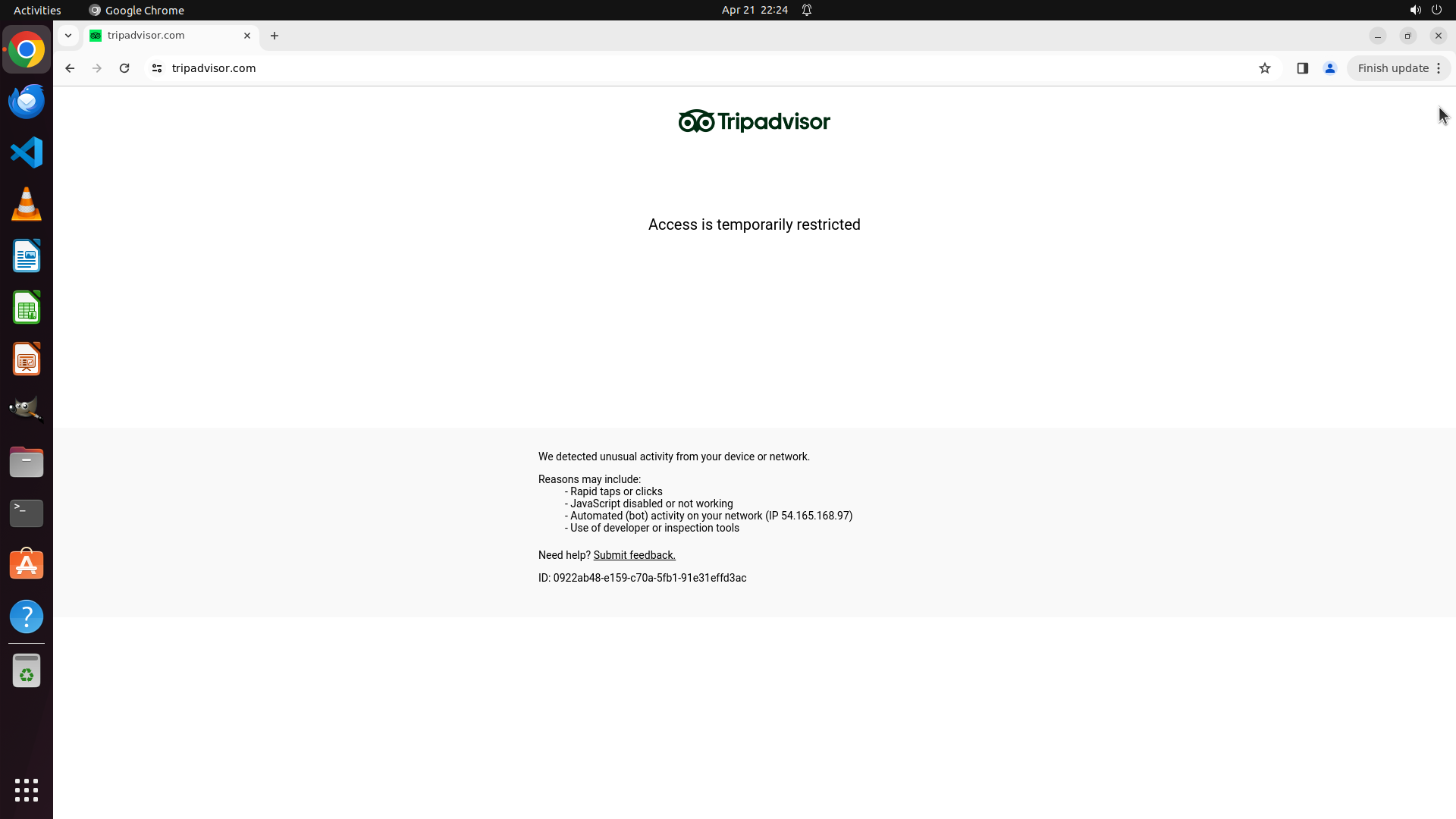 - Chrome浏览器仍显示TripAdvisor的"Access is temporarily restricted"(访问暂时受限)错误页面
