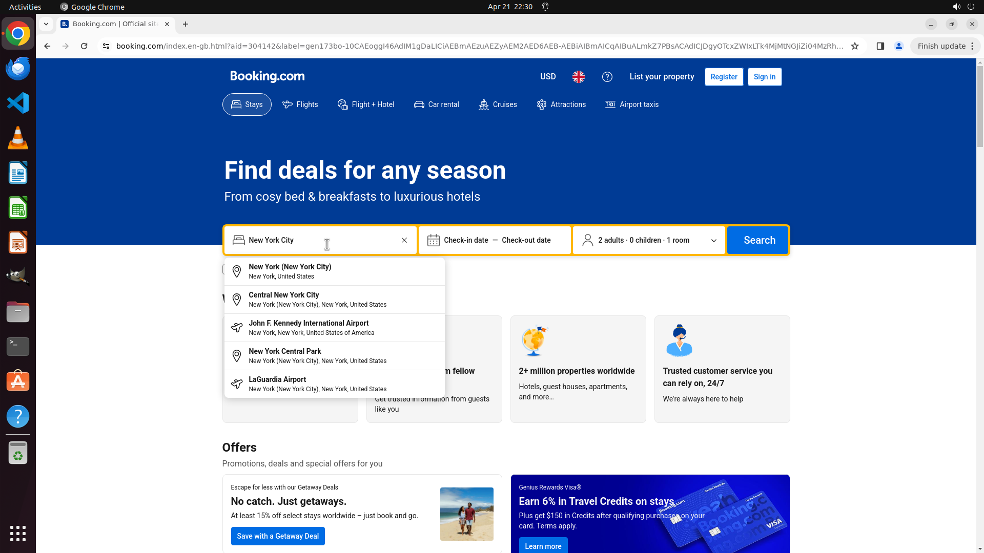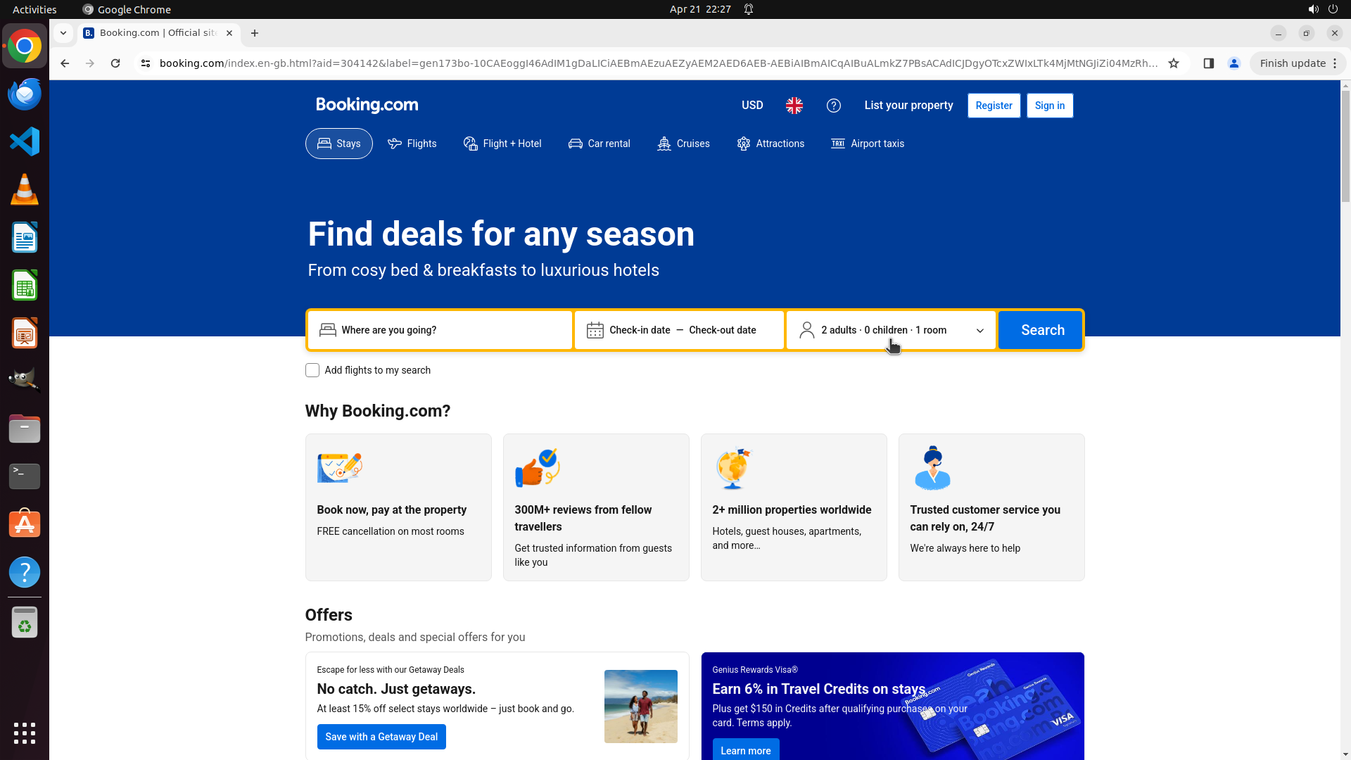 2. 直接输入booking.com导航到Booking.com网站