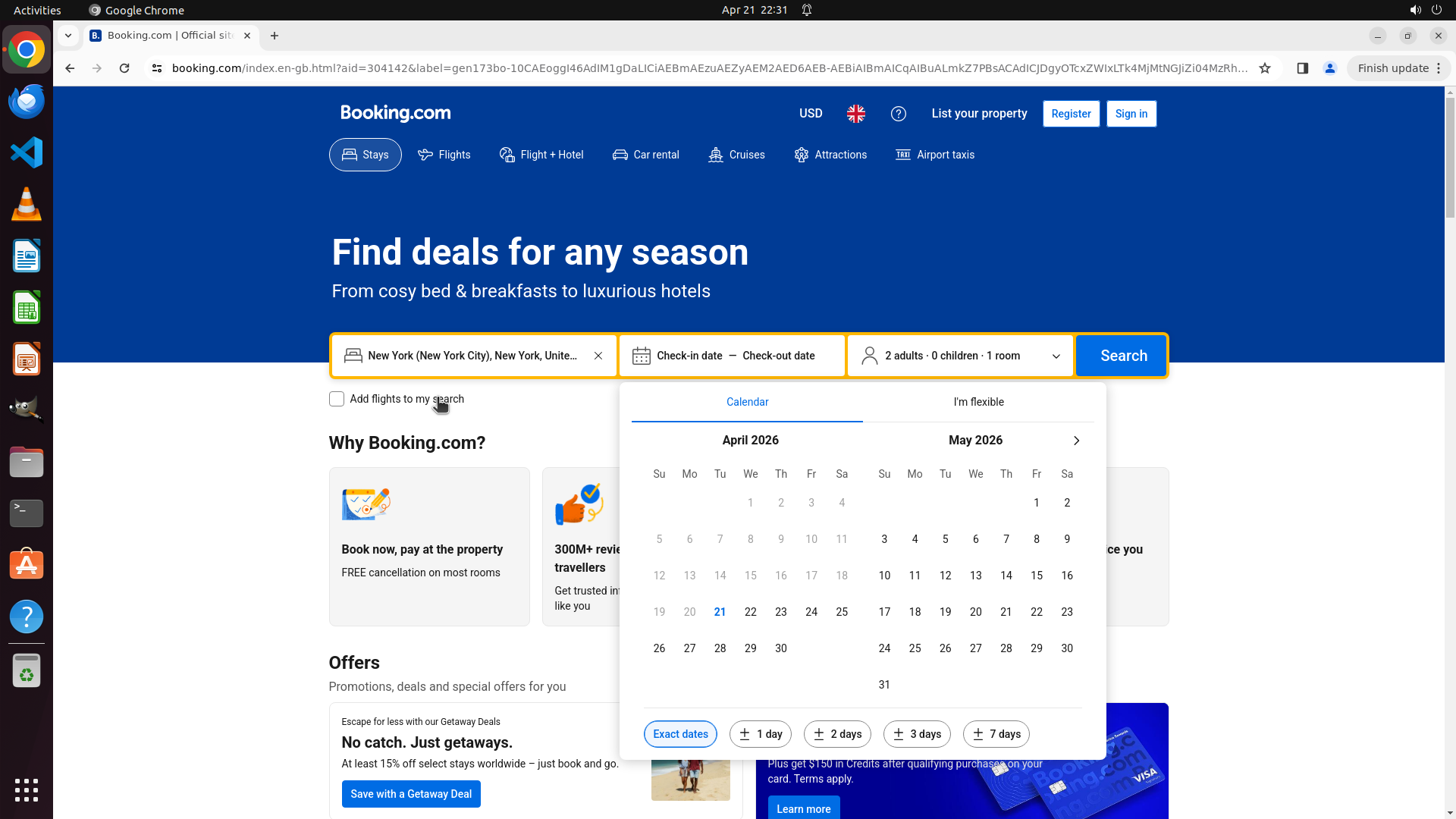 - 搜索参数完全正确:纽约市、4月26-27日(下周末)、2位成人