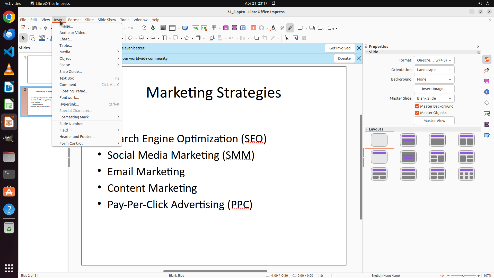 - LibreOffice Impress 已打开,显示 "31_2.pptx" 演示文稿