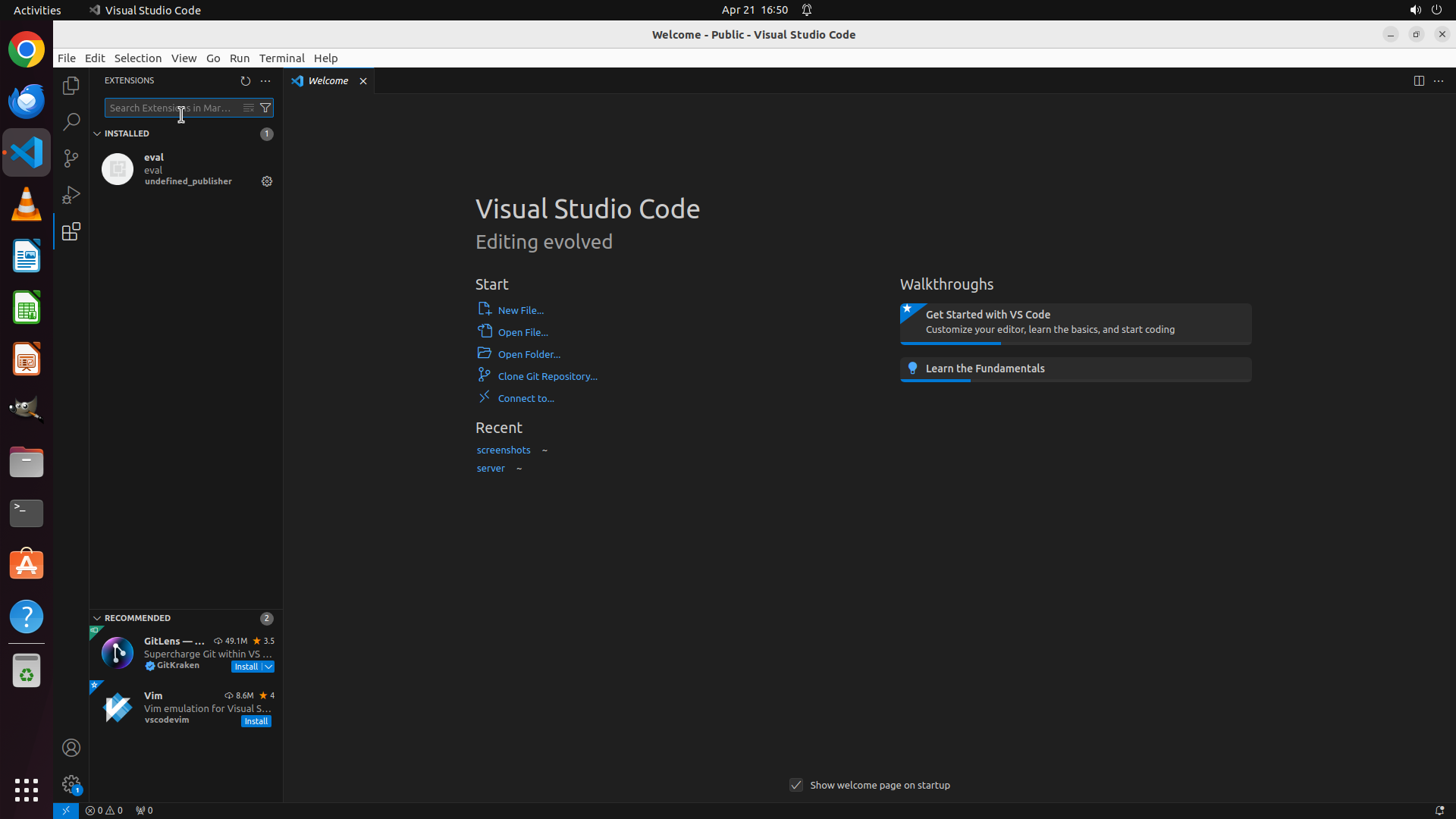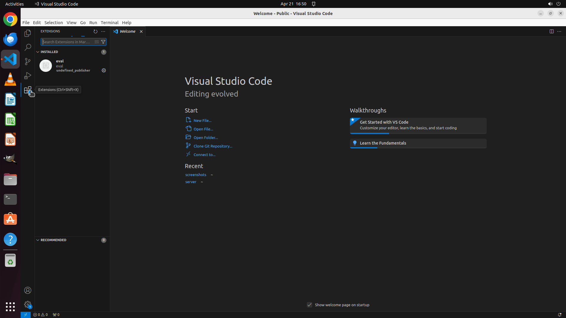 - INSTALLED 部分显示有 1 个已安装扩展(eval)