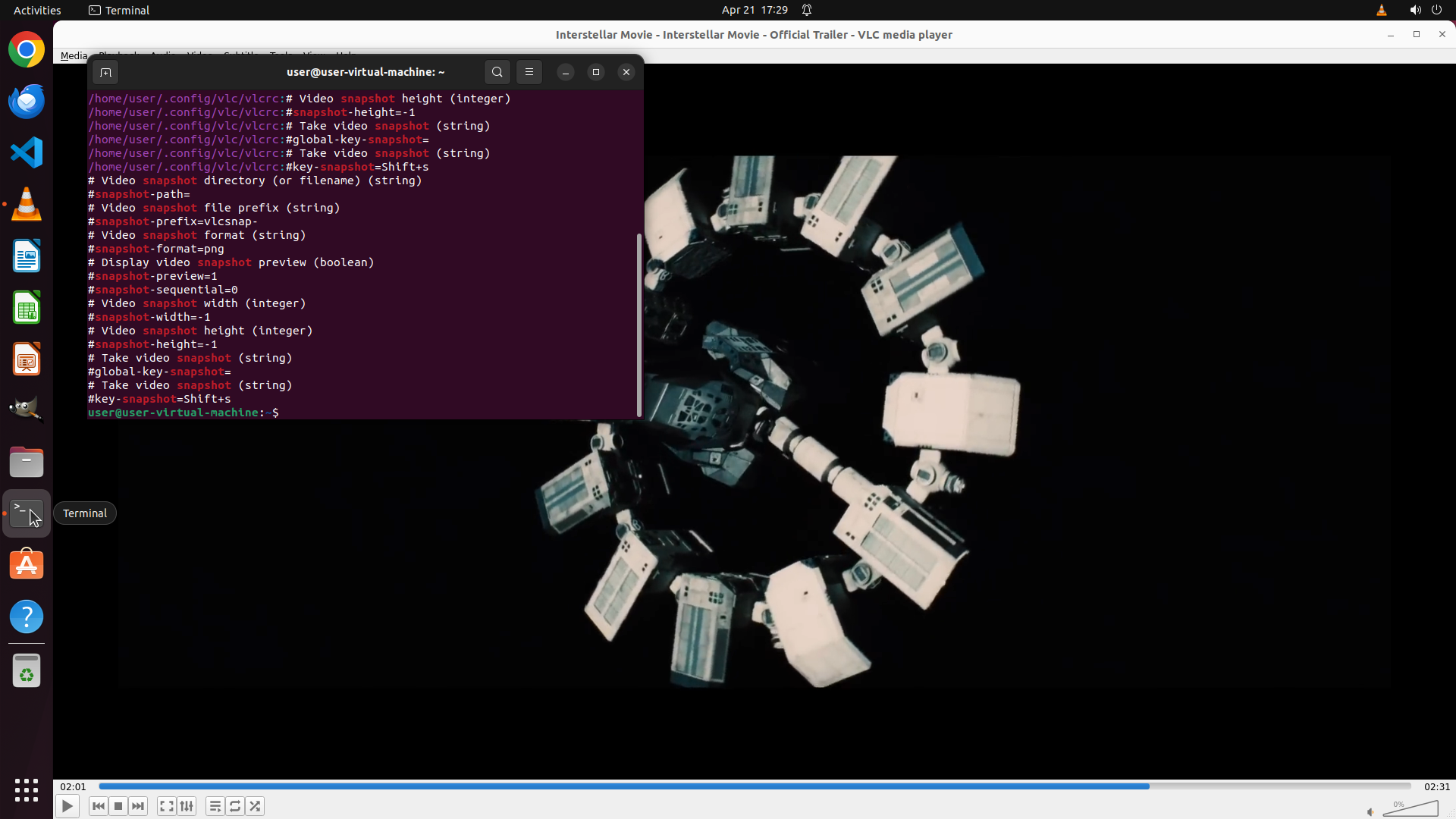 我将在终端中执行命令来查找VLC截图配置信息。