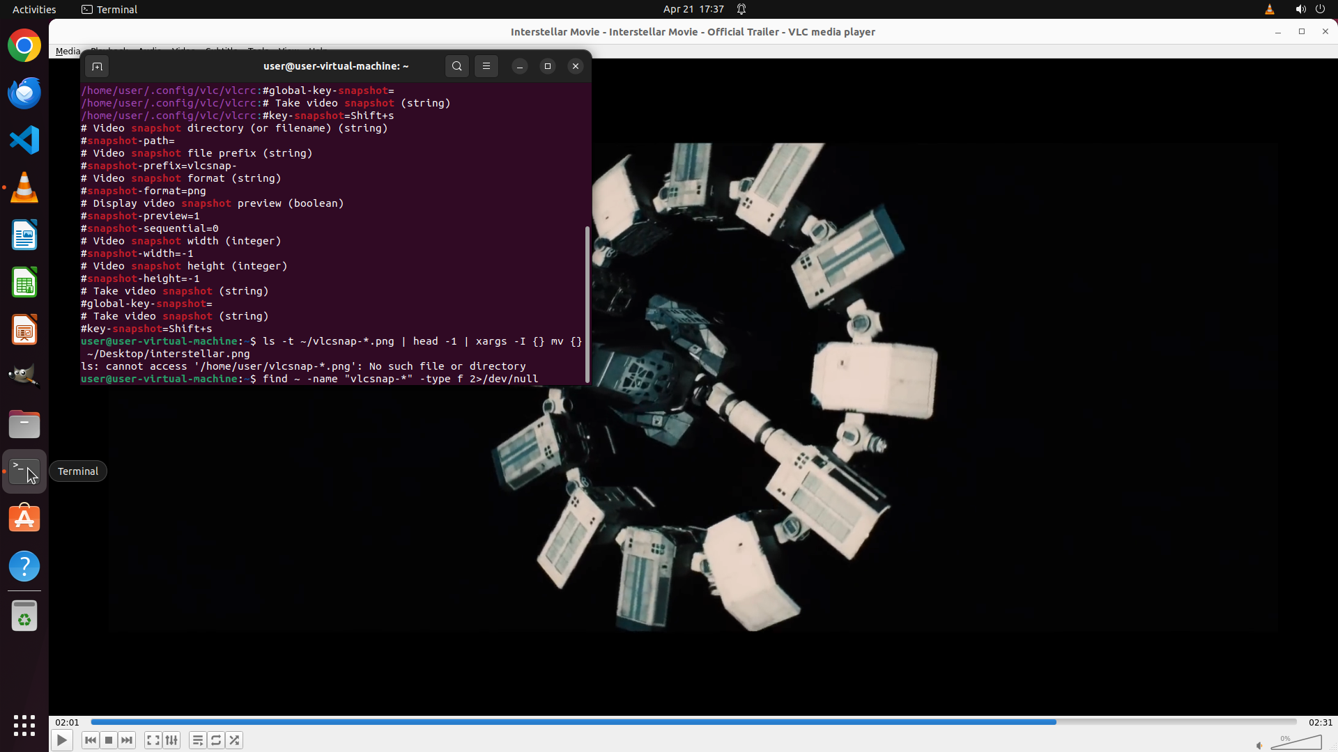 TYPING "grep -r "snapshot" ~/.config/vlc/ 2>/dev…"