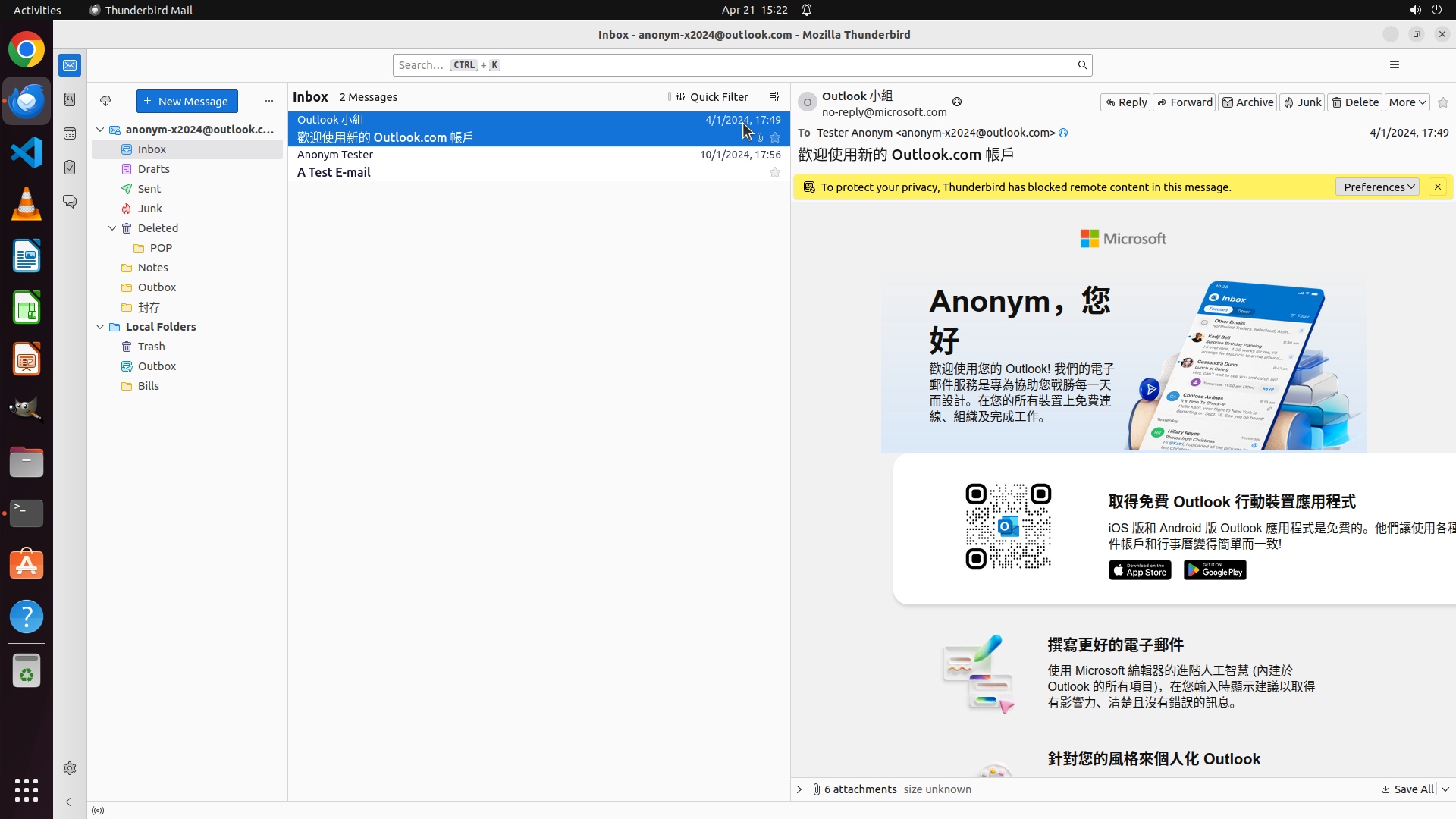 - "欢迎使用你的 Outlook.com 账户" (4/1/2024, 17:49)