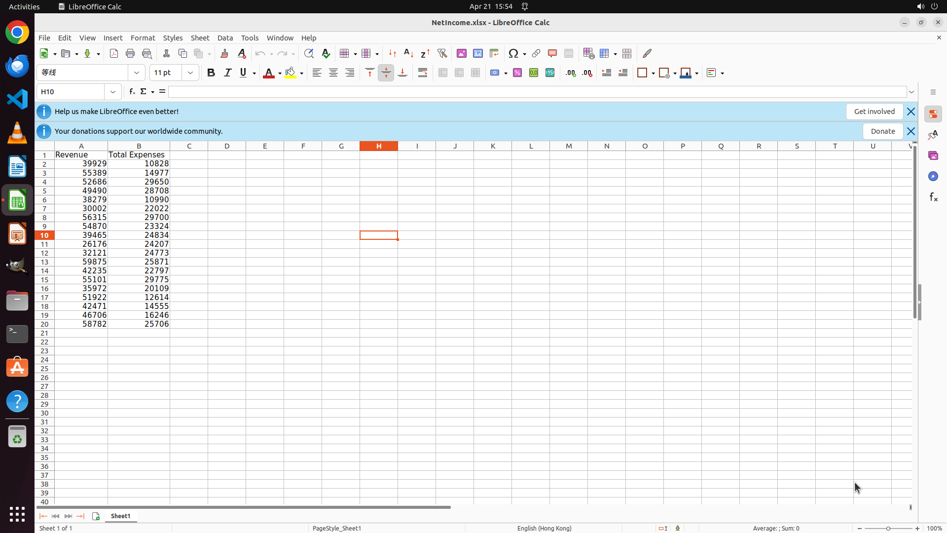 ## 确认 Revenue 和 Total Expenses 列的数据是否从第2行开始(第1行为表头)