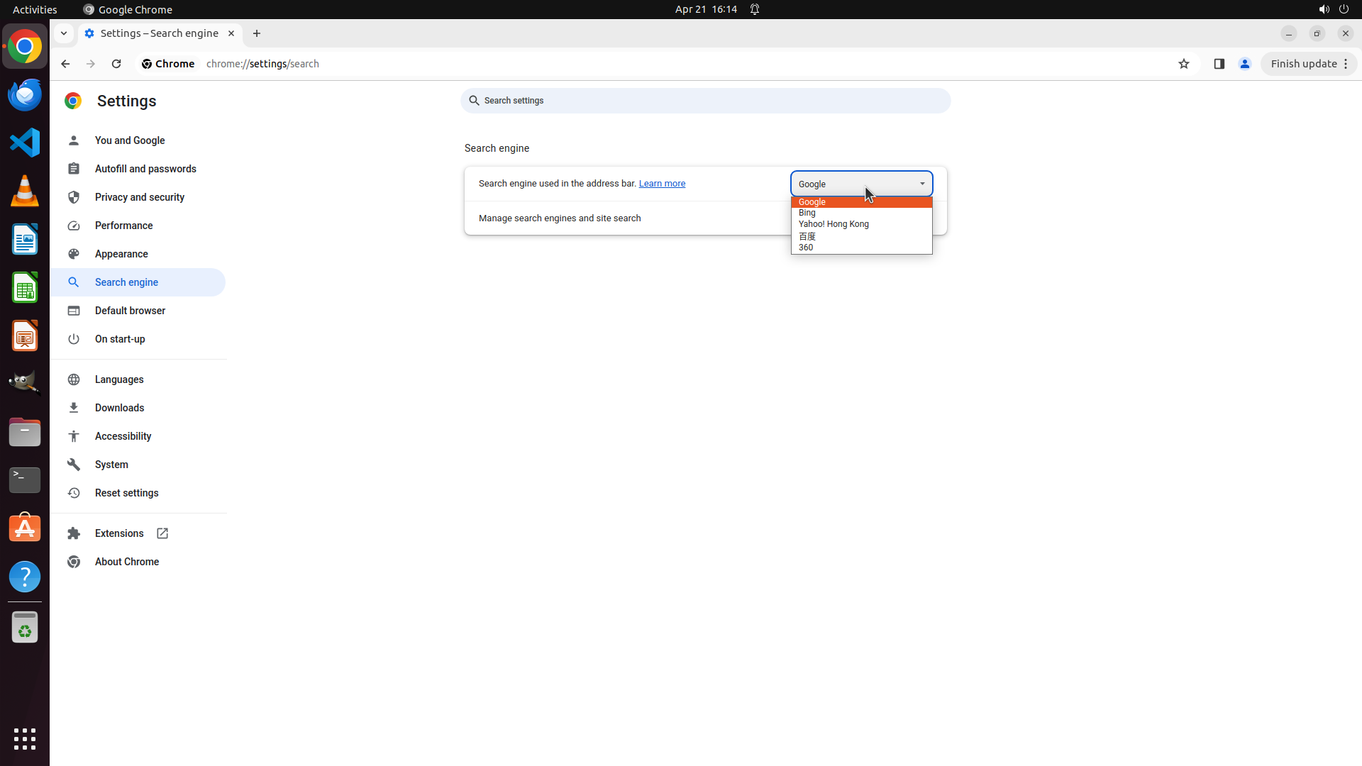 2: Navigate to the Search engine settings section