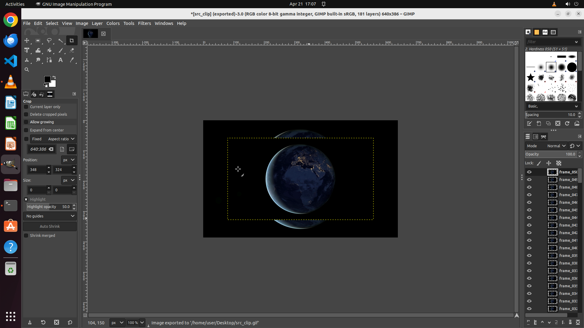 2.3: [success] Export as animated GIF named src_clip.gif to Desktop