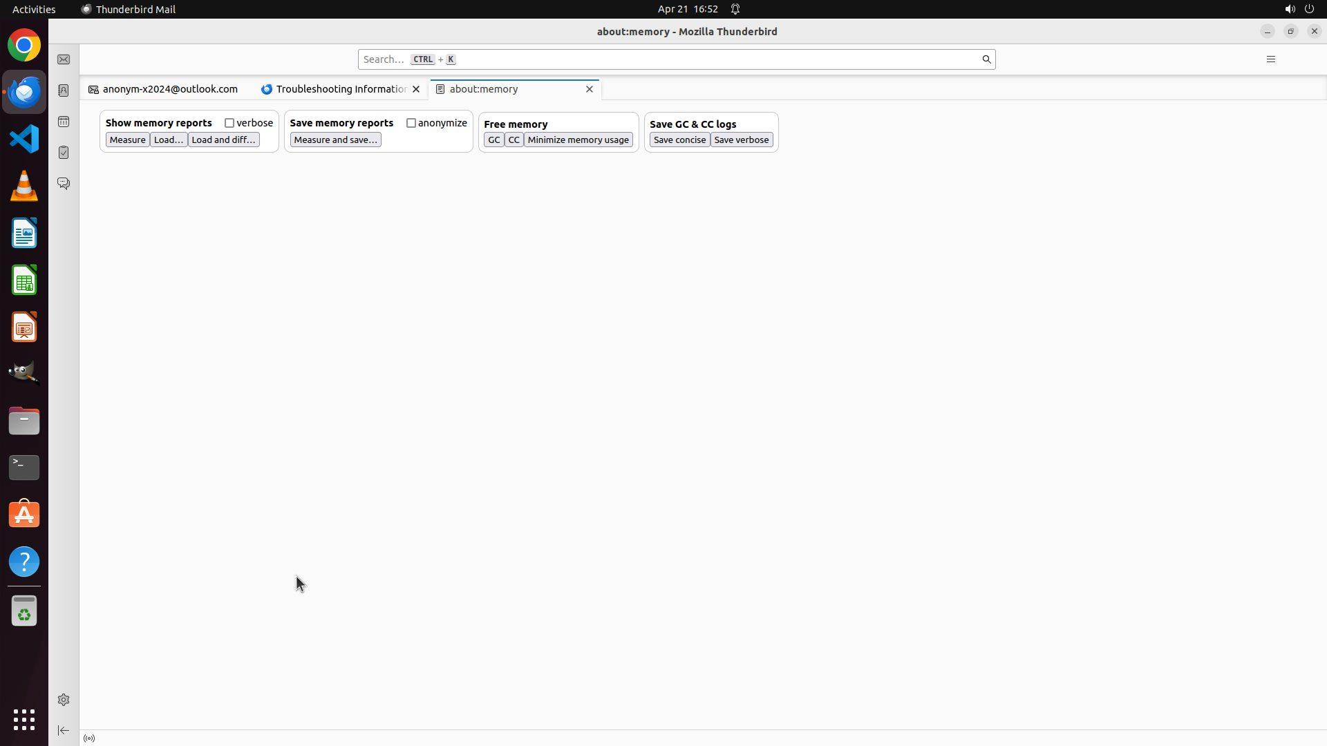 你的任务是:借助工具,来操作一台电脑来达成任务: Could you help me open up the profile management tabpage in Thunderbird? I want the profile management tabpage inside Thunderbird app, but not the profile chooser dialog during app launch.。