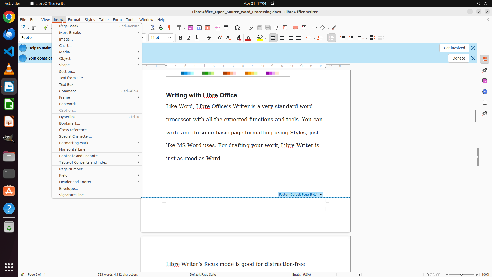 1: Open the Insert menu to access Footer options