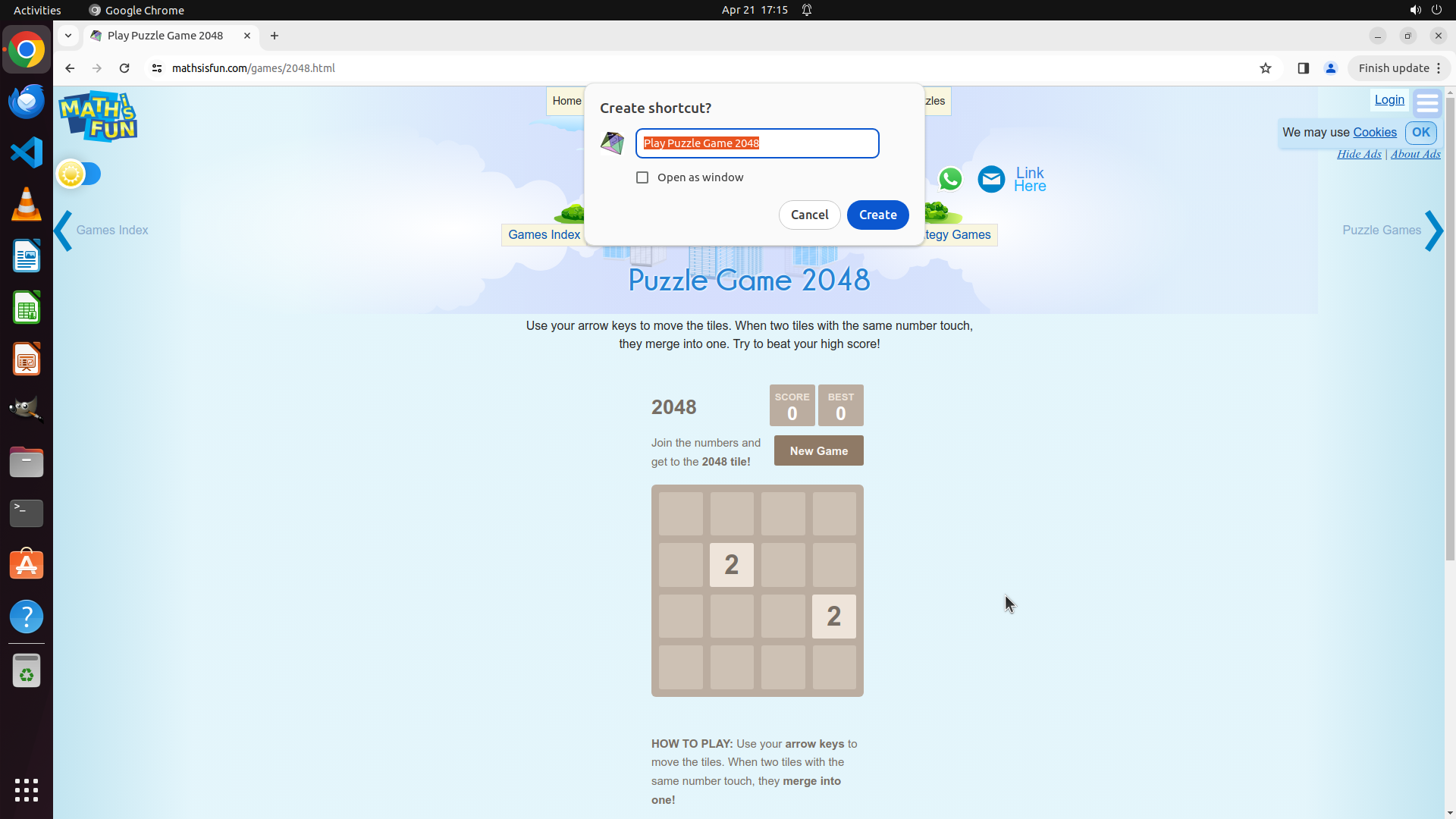 - Ubuntu 桌面上出现名为 'Puzzle Game 2048' 或 'mathisfun.com' 的新快捷方式图标
