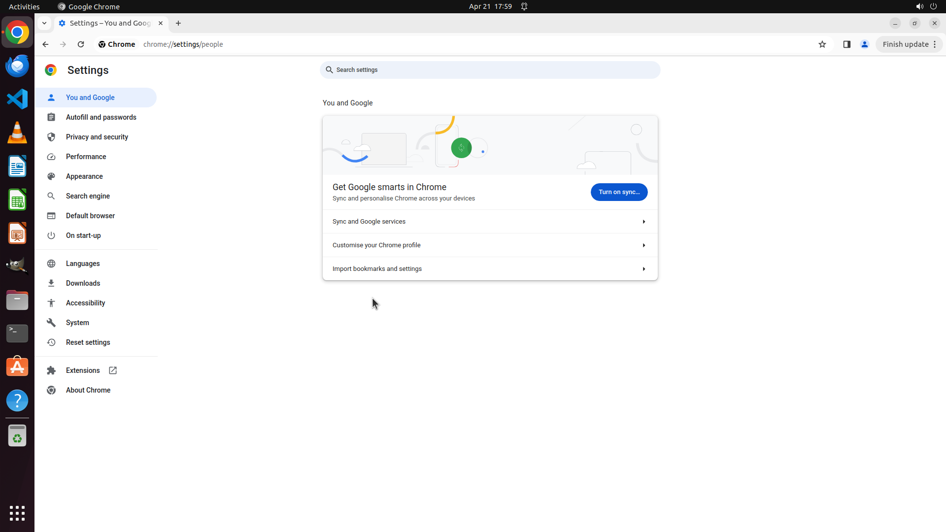 - Chrome Settings页面,"You and Google"部分