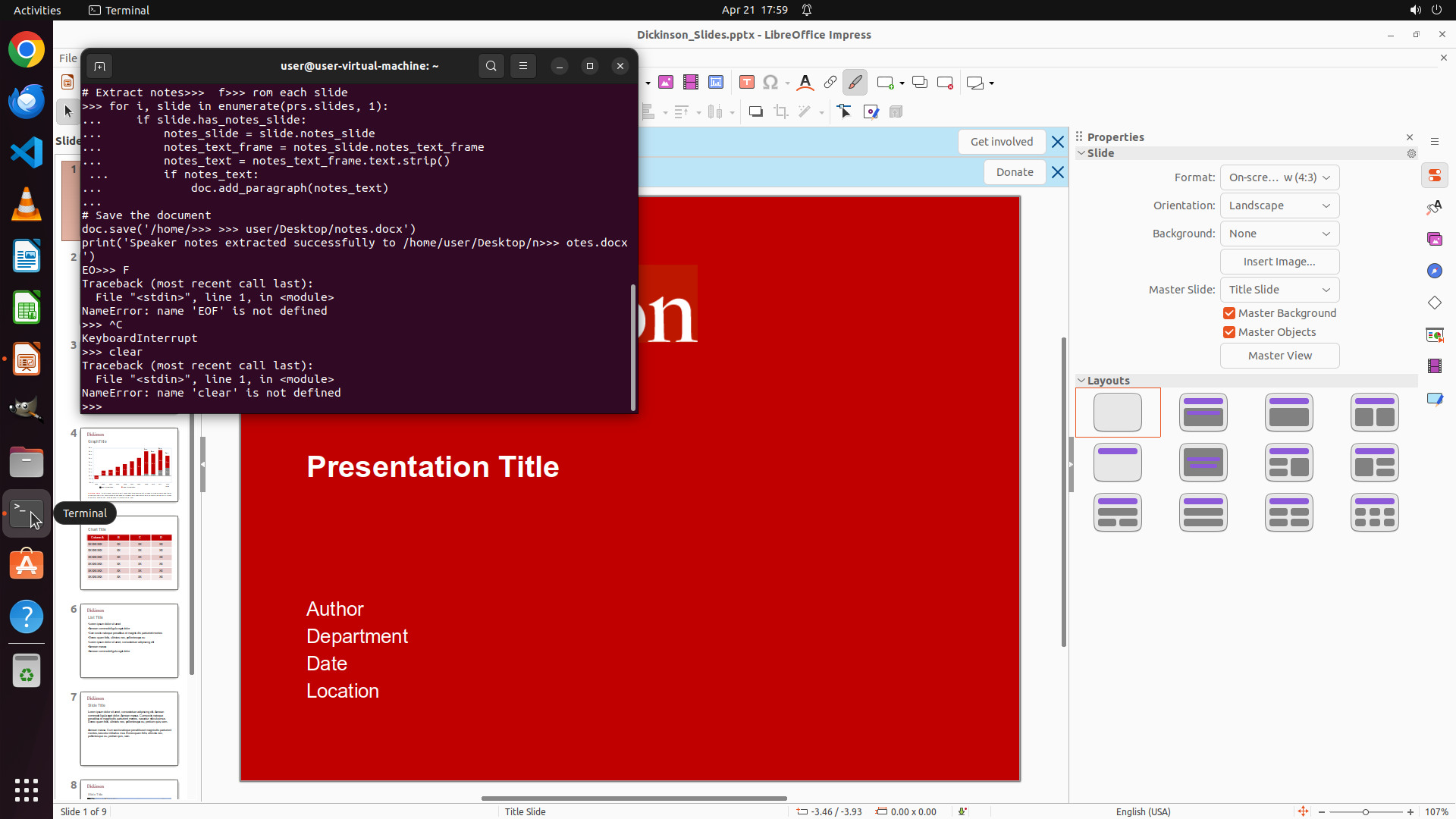 - 文件路径似乎是 /home/user/Desktop/Dickinson_Slides.pptx