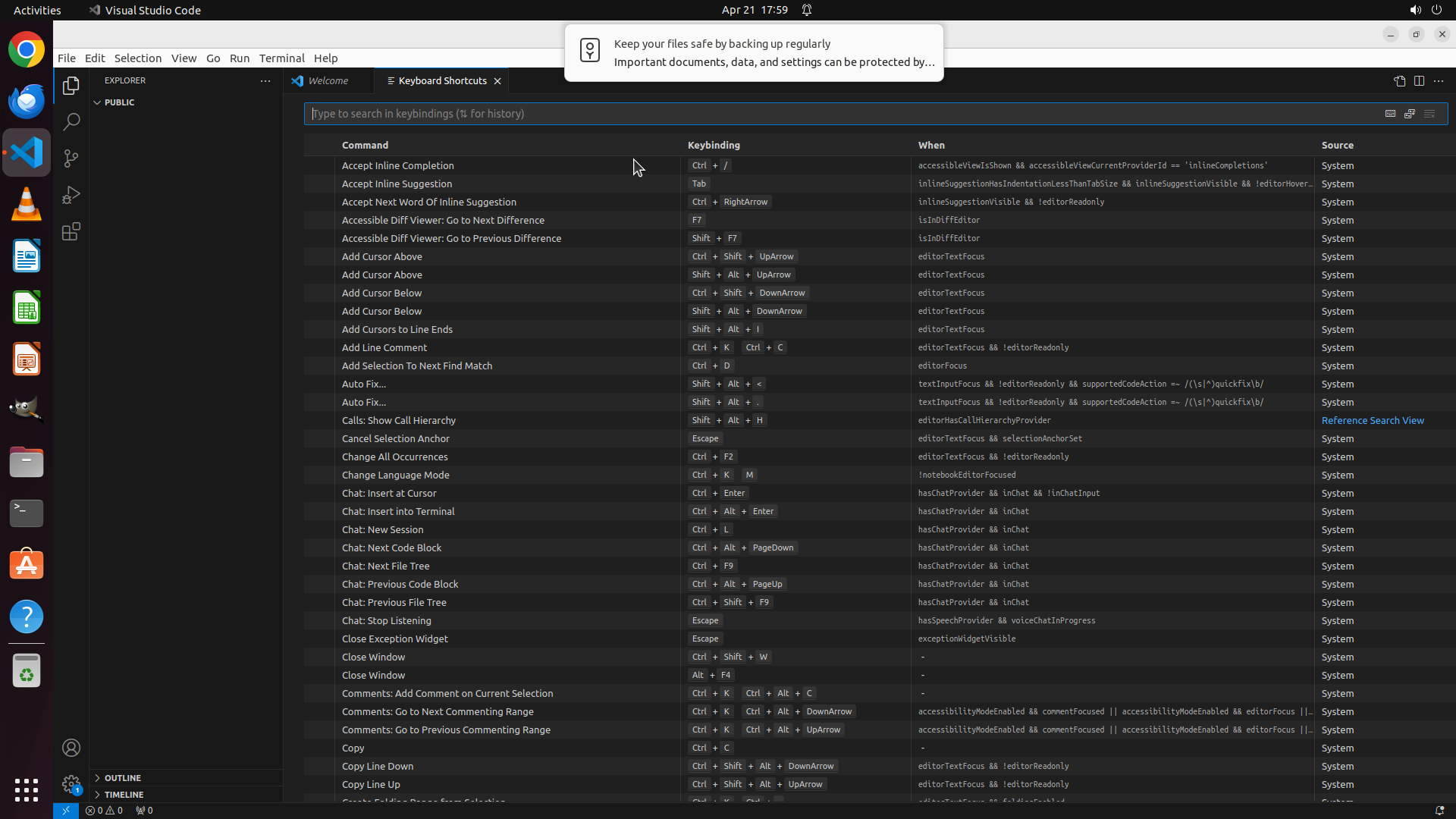 - VS Code: Keyboard Shortcuts settings page is open and visible