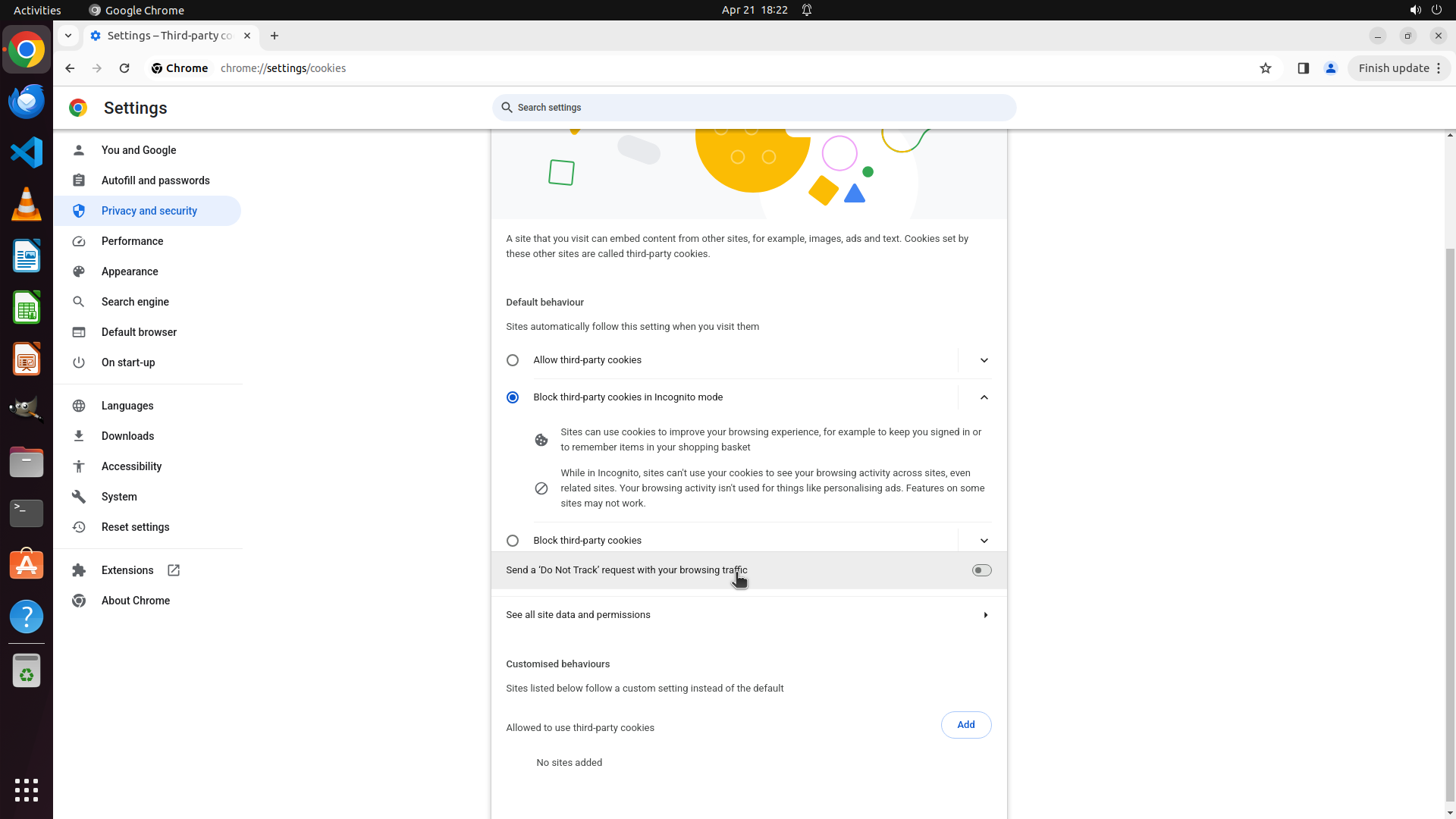 - Third-party cookies (showing "Third-party cookies are blocked in Incognito mode")