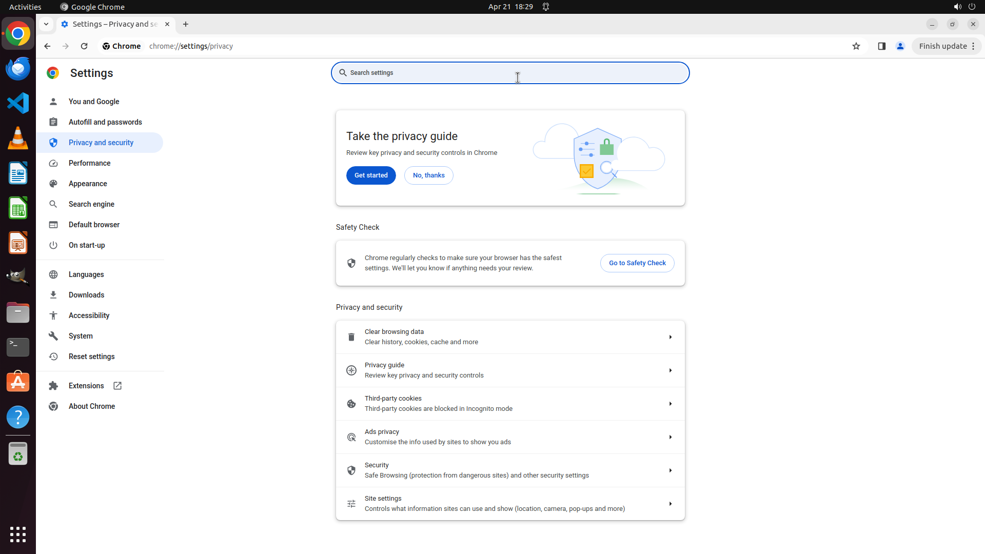 I'm currently on the Privacy and security main page (chrome://settings/privacy). I can see the following options: