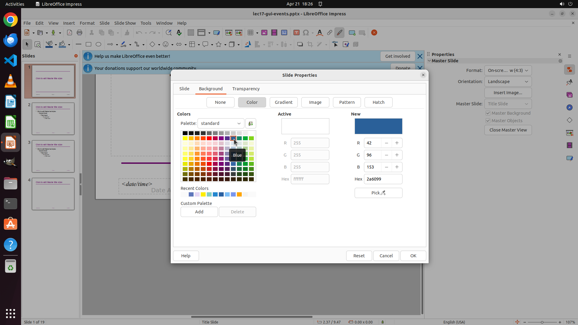 4: [pending] Change all slide backgrounds to blue in LibreOffice Impress
