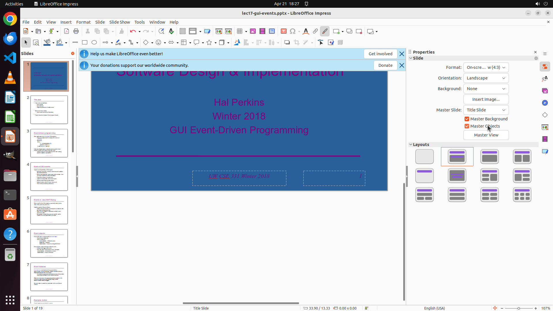 - 仍处于 Master View 模式(Properties 面板显示 "Master Slide")