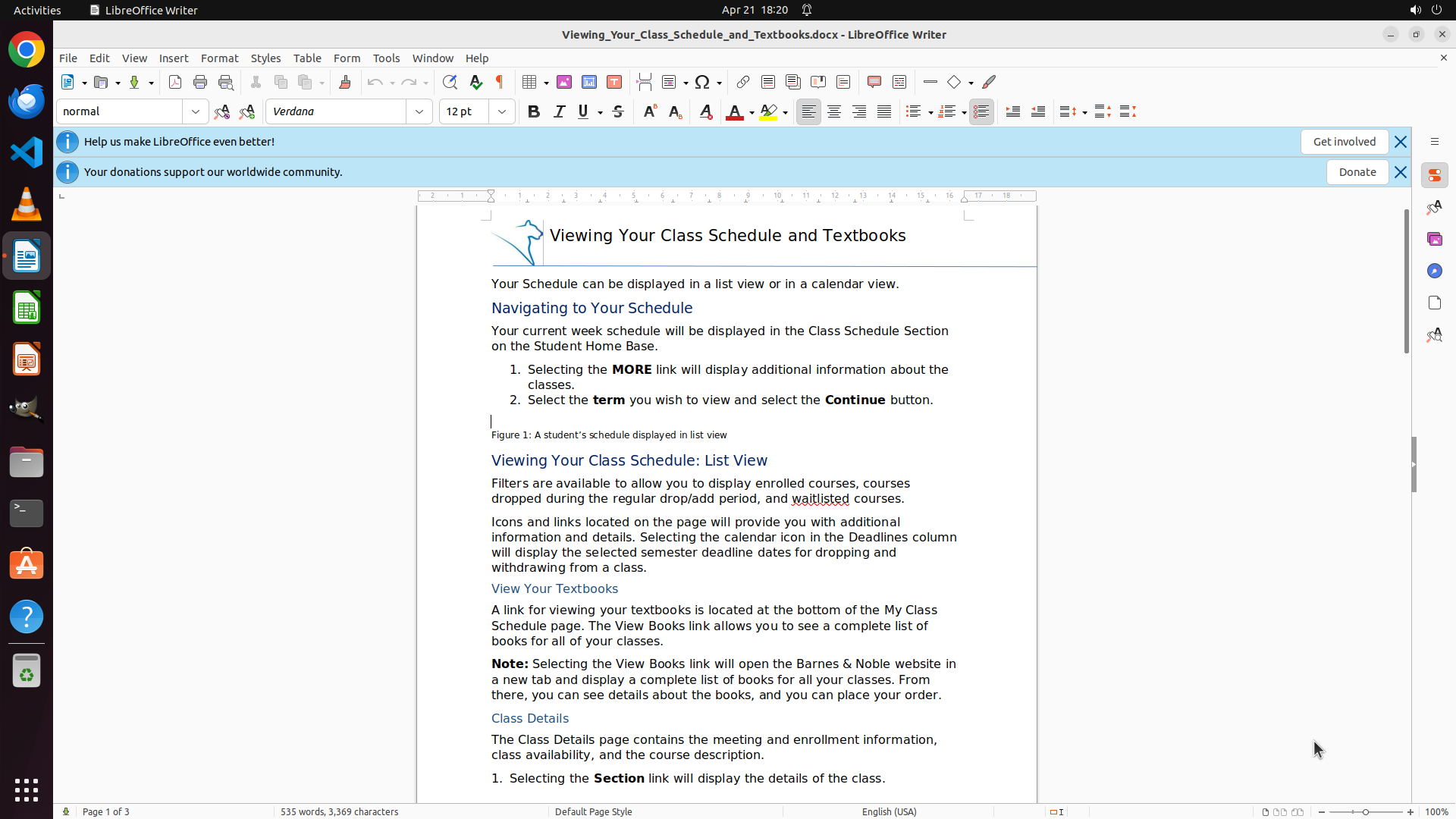 ## What is the current cursor position - is it in the LibreOffice Writer document and at what location?