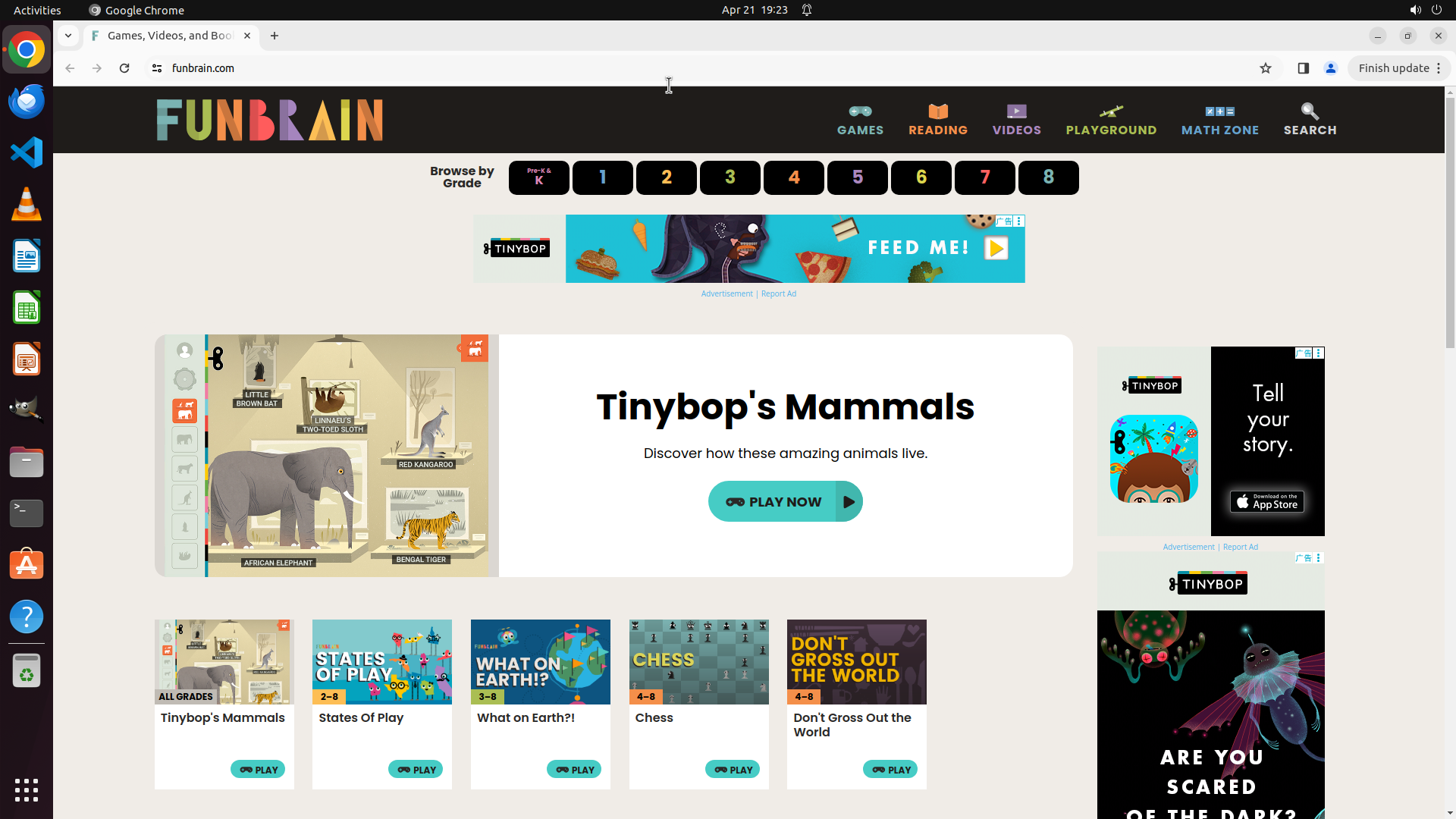 3. Chrome浏览器在后台运行,地址栏仍显示funbrain.com