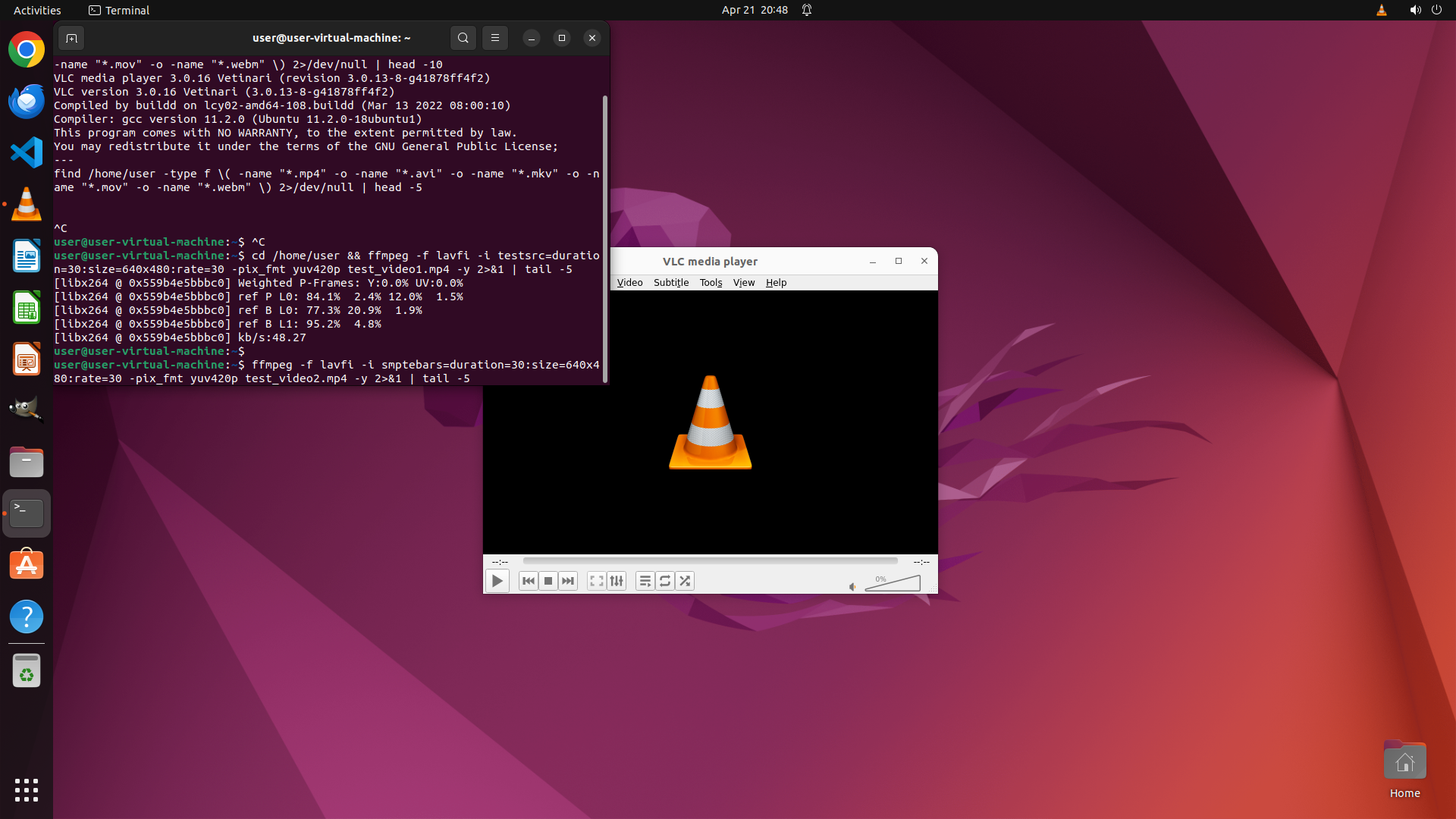 - Terminal window is in focus showing ffmpeg command execution has completed