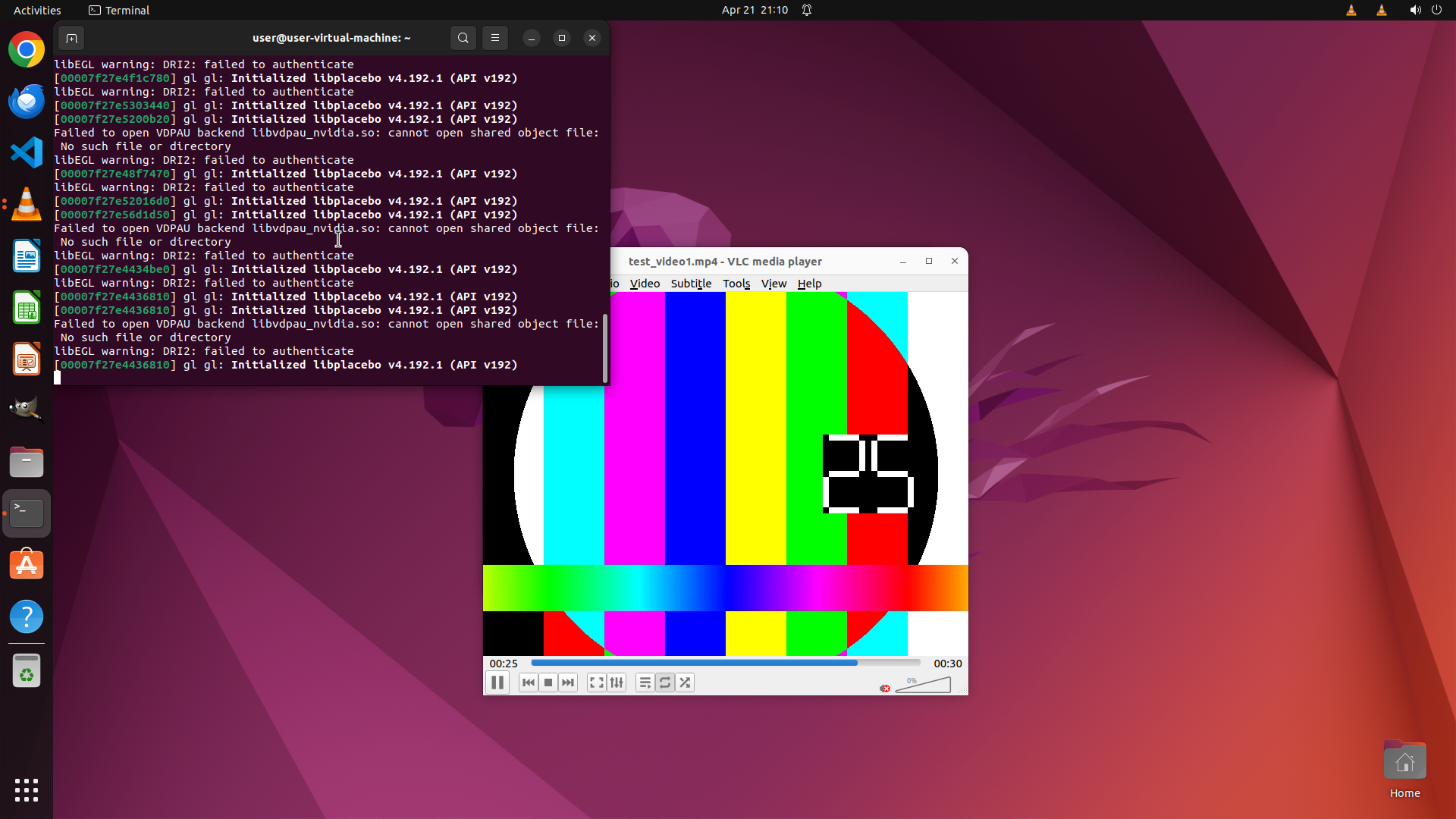 - Multiple "Initialized libplacebo" messages are visible in the terminal